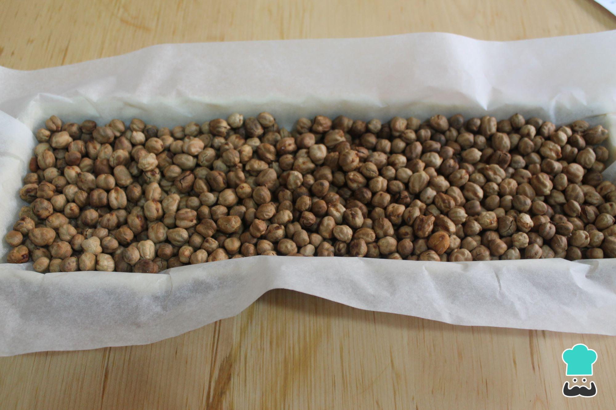 Precalienta el horno a 200 ºC con calor arriba y abajo y retira de la nevera el molde que teníamos reservado con la plancha de hojaldre. Corta un papel de horno un poco más grande que el molde y coloca encima. Cubre todo el molde con legumbres secas e incorpora al horno a 200 ºC con calor sólo abajo, hornea durante 15 minutos.