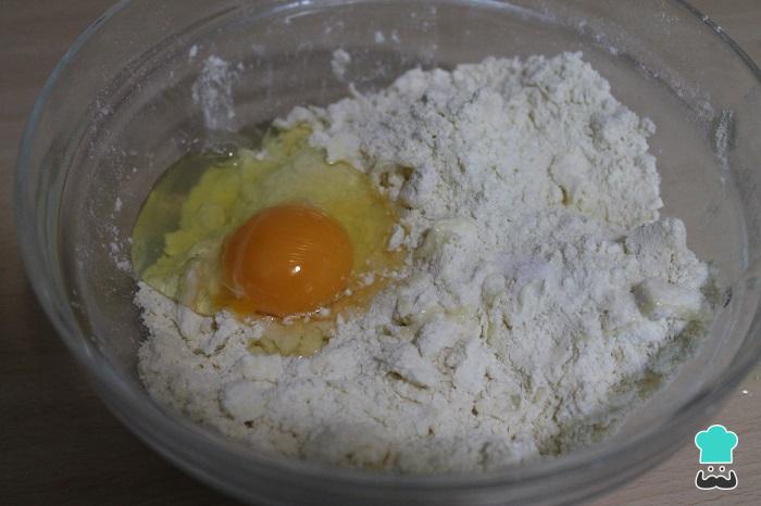 Añadir el huevo y dos cucharadas soperas de agua. Amasar con las manos hasta formar un compuesto homogéneo.