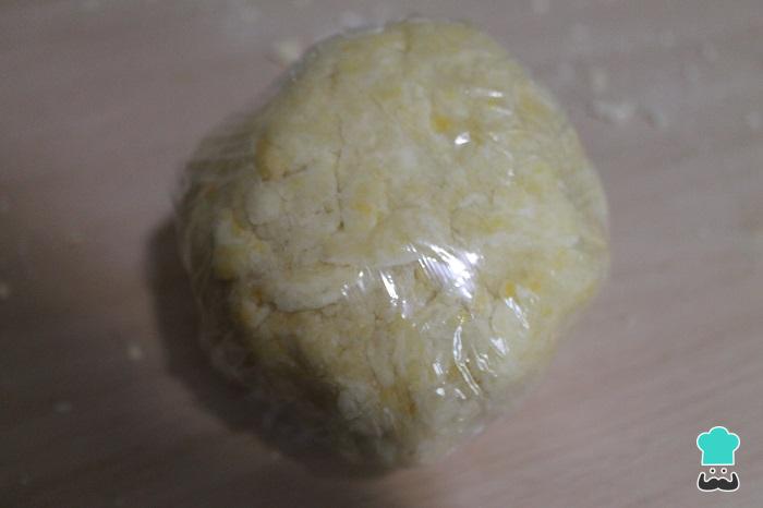 Formar una bola con la masa de la tarta de sidra, envolver en papel film y reservar en la nevera 30 minutos.