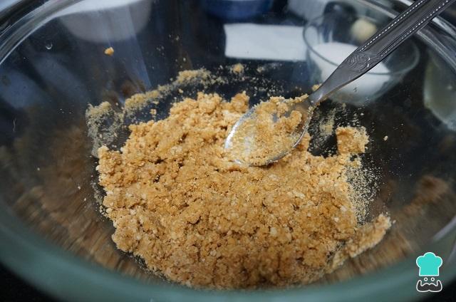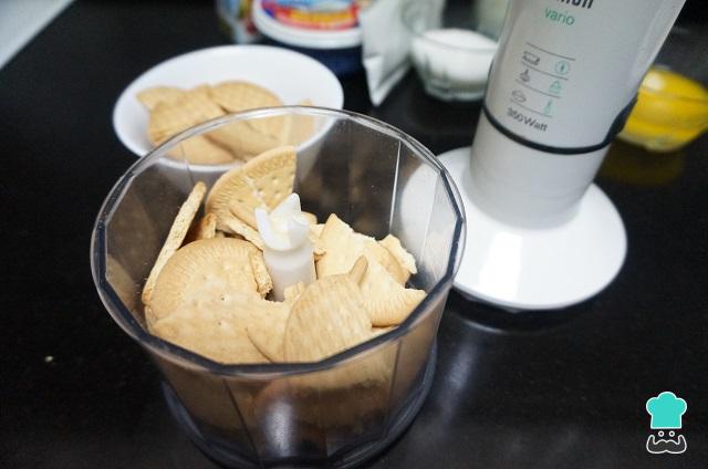 Primero prepararemos la base de galletas. Para hacerlo, trituraremos todas las galletas a mano o con una picadora, lo importante es dejarlas lo más fino posible. Puedes utilizar galletas María, Digestive o cualquiera similar.
