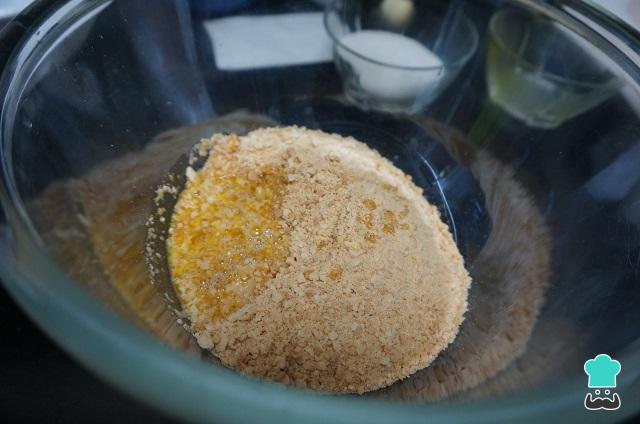 Añadimos la mantequilla derretida a las galletas en polvo y mezclamos..