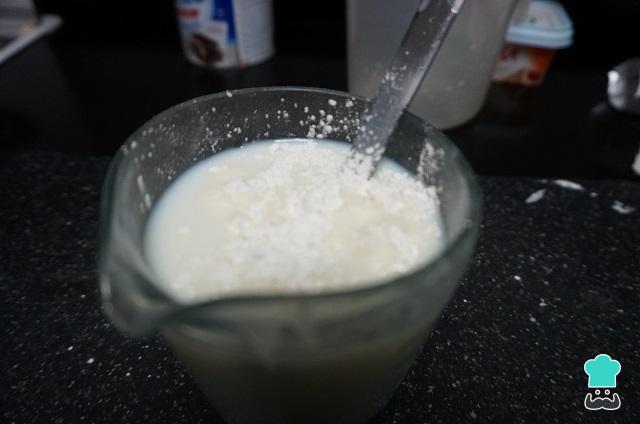 En un vaso pondremos los 200 ml. de leche y el sobre de cuajada, lo mezclaremos bien hasta que quede bien disuelto, sin grumos.