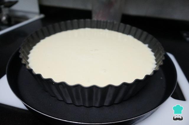 Cuando empiece a hervir otra vez retiramos del fuego. Vertemos el relleno sobre el molde con el fondo de galletas, lo dejamos templar y lo metemos en la nevera unas 3-4 horas.
