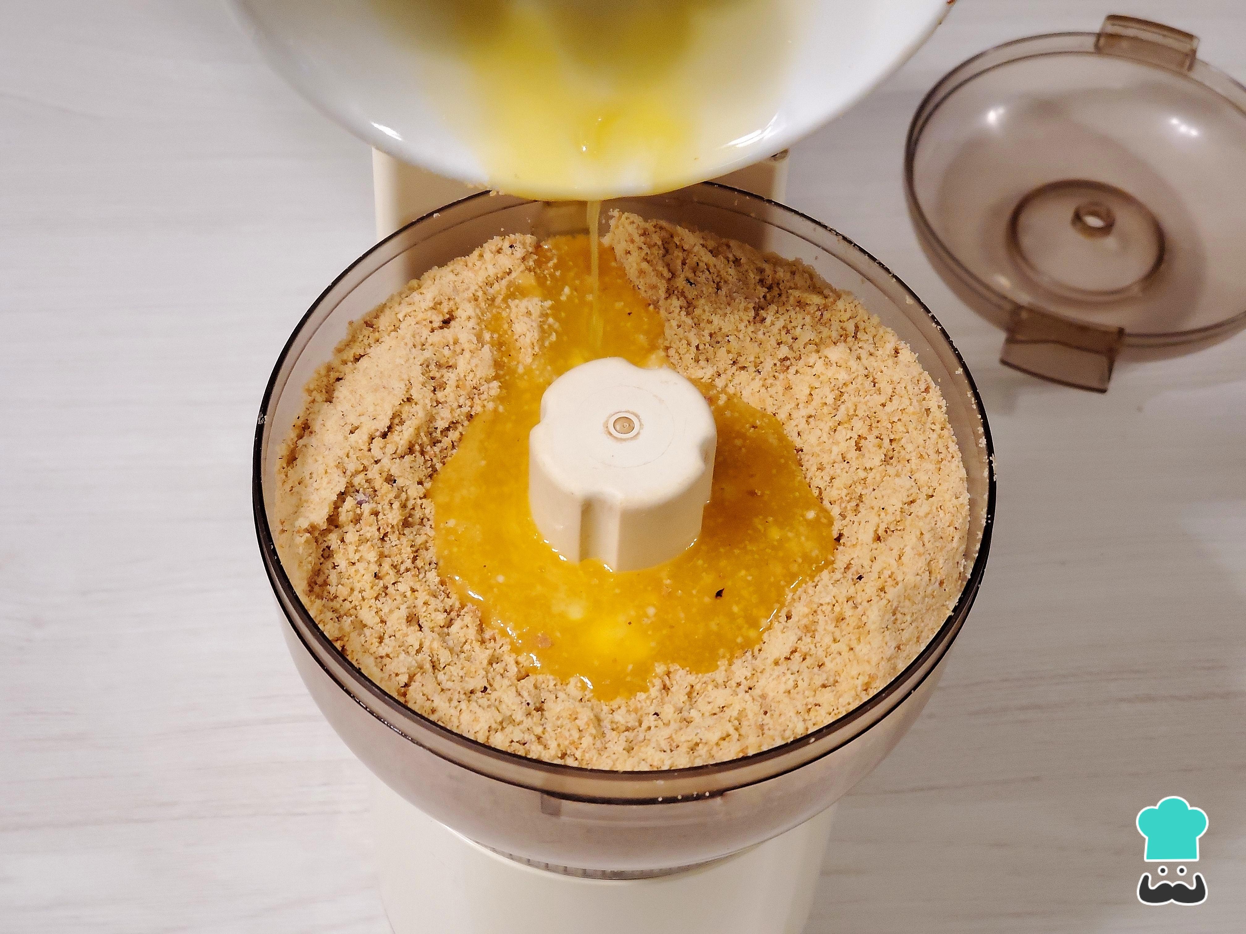 Seguidamente, derrite la mantequilla y viértela sobre las galletas trituradas. Mezcla bien hasta que se empiece a unir en una masa.