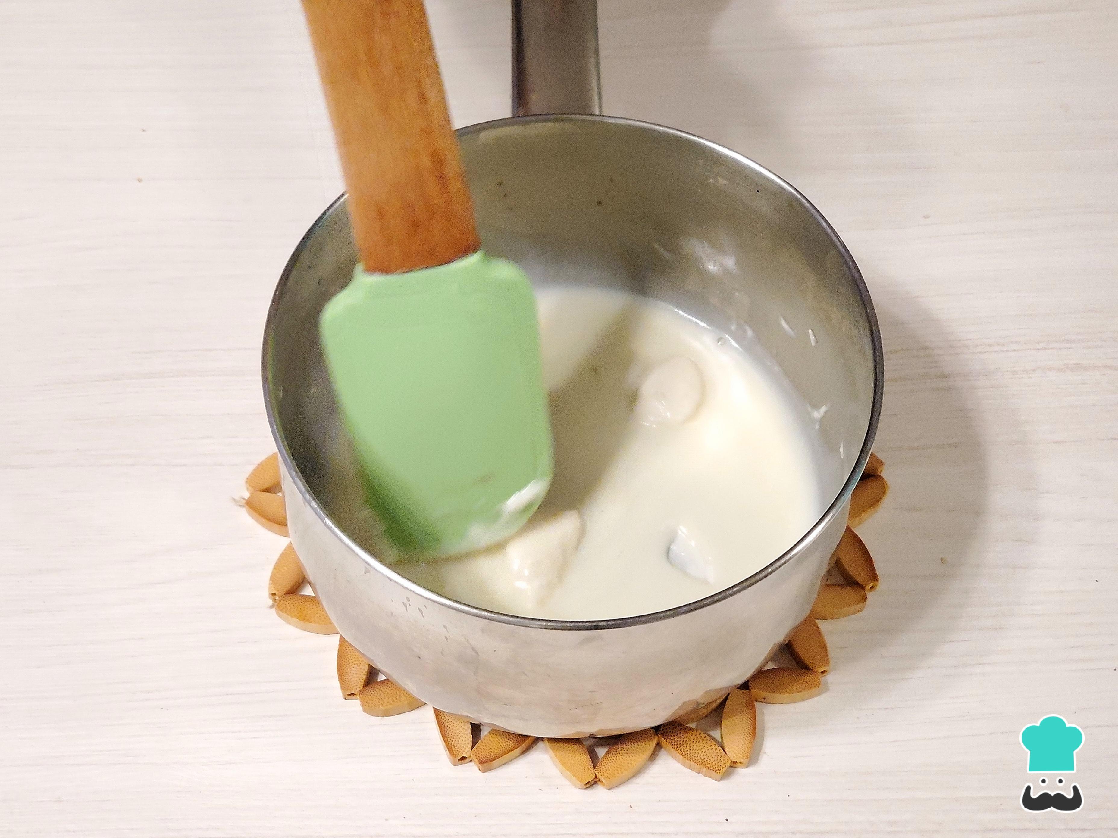 - Cuando rompa hervor, retira del fuego e incorpora la gelatina hidratada.
