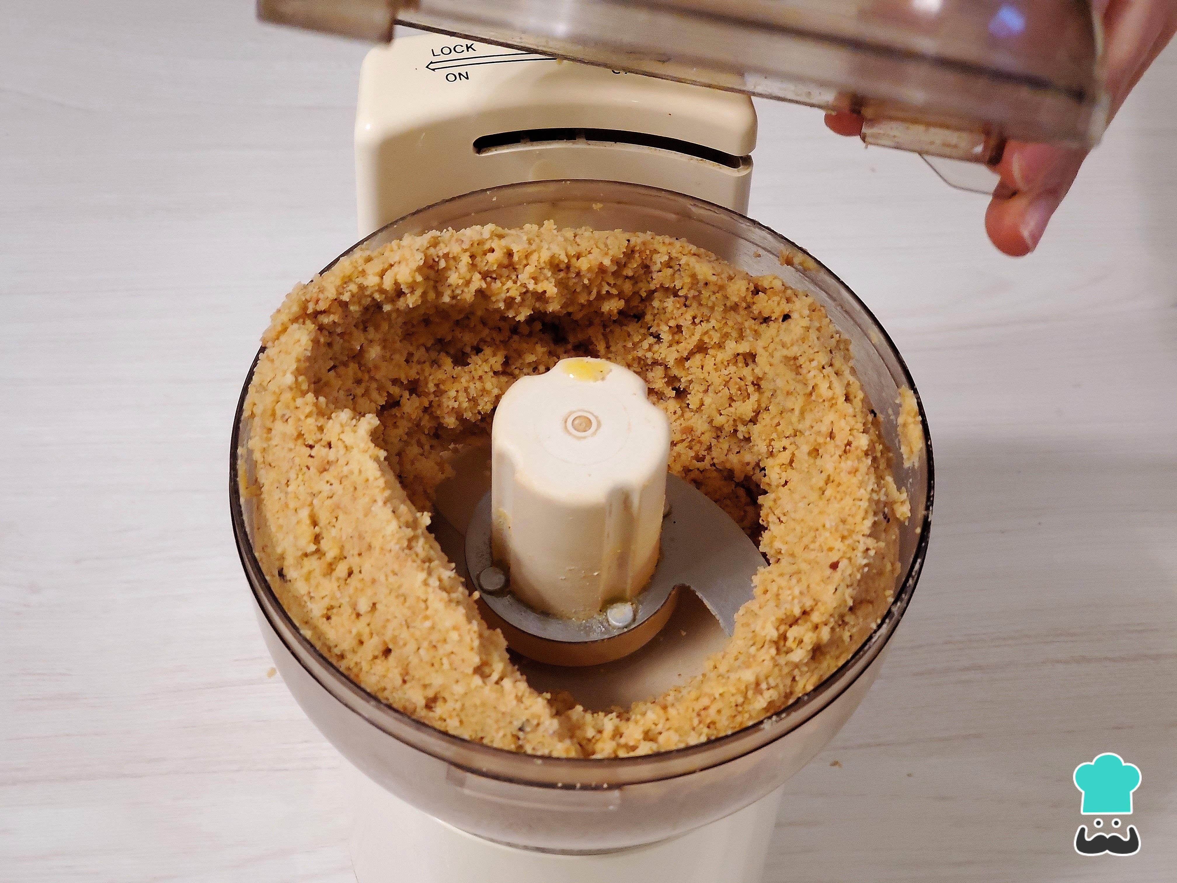 Comienza triturando las galletas de vainilla hasta que queden gránulos finos. Para ello, puedes utilizar el procesador de alimentos. También puedes colocar las galletas dentro de una bolsa con cierre y golpearlas con un rodillo hasta que se pulvericen.