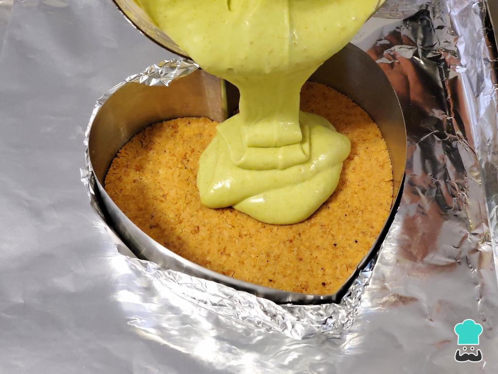- Mezcla las galletas trituradas con la mantequilla derretida y presiona en la base del molde.