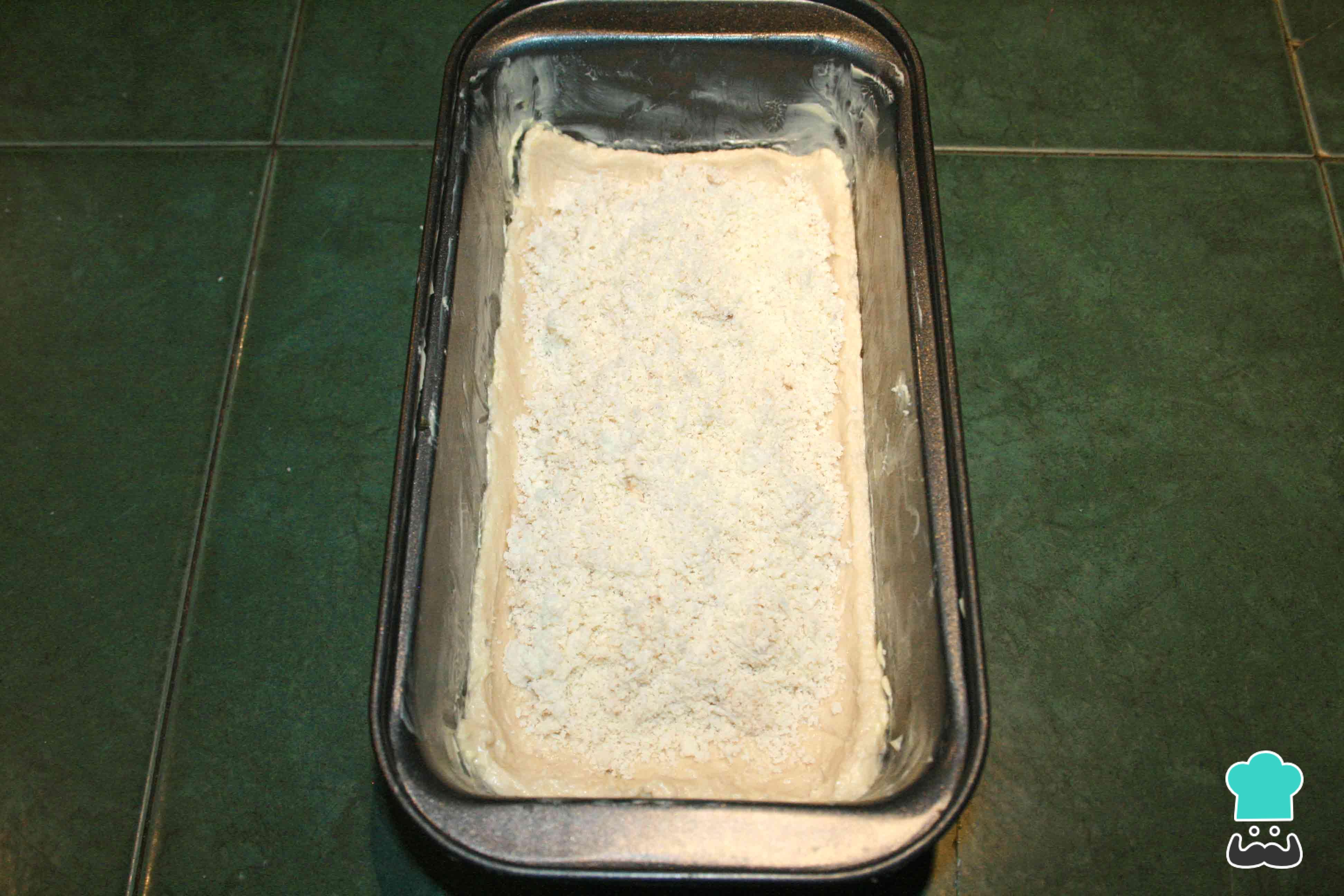 Pon una capa de requesón sobre la masa de hojaldre. Distribuye tratando de no tocar los bordes pues luego serán los puntos para sellar la tarta de manzana.