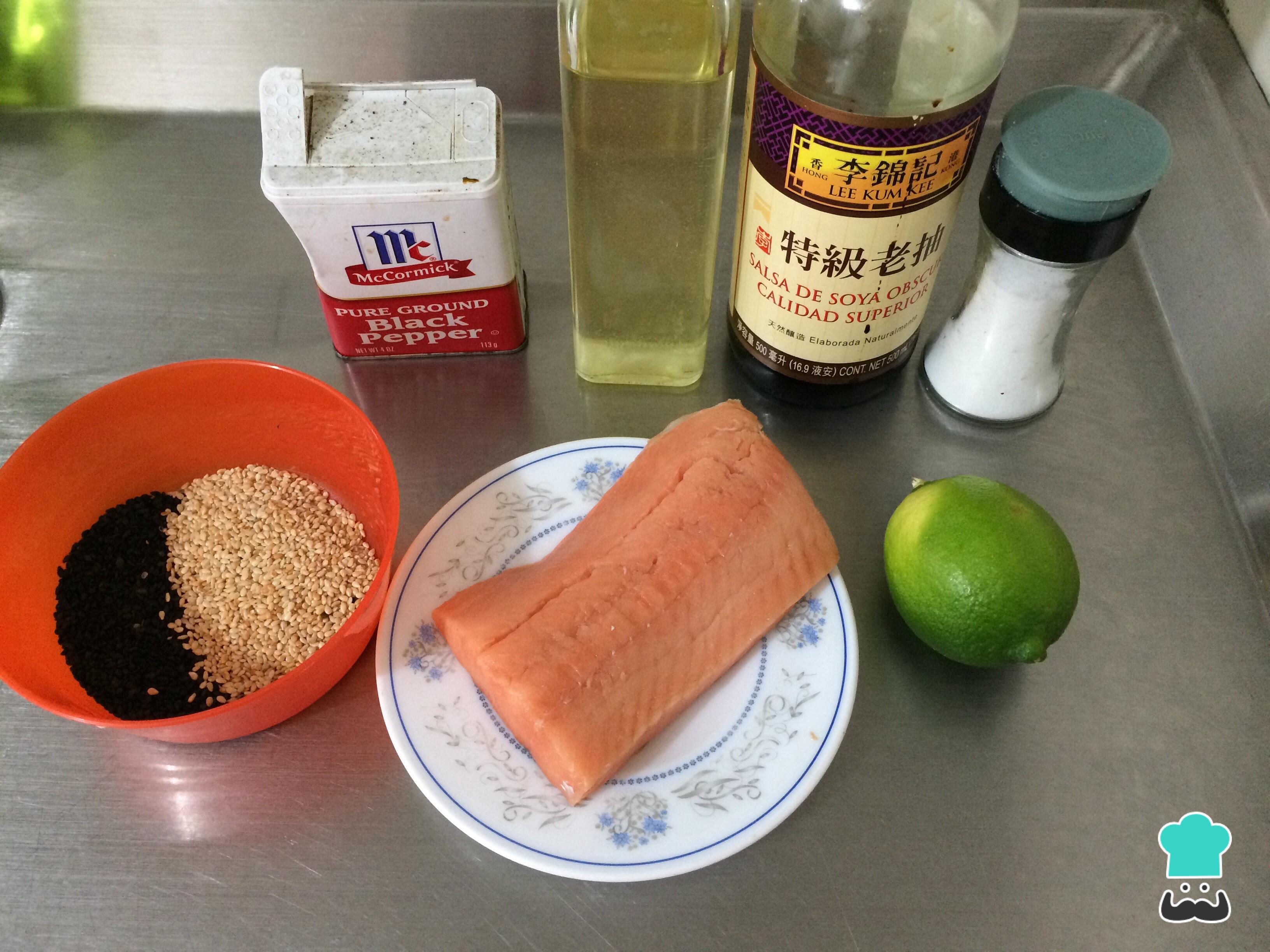 Antes de realizar el tataki de salmón con sésamo, el primer paso es alistar todos los ingredientes.