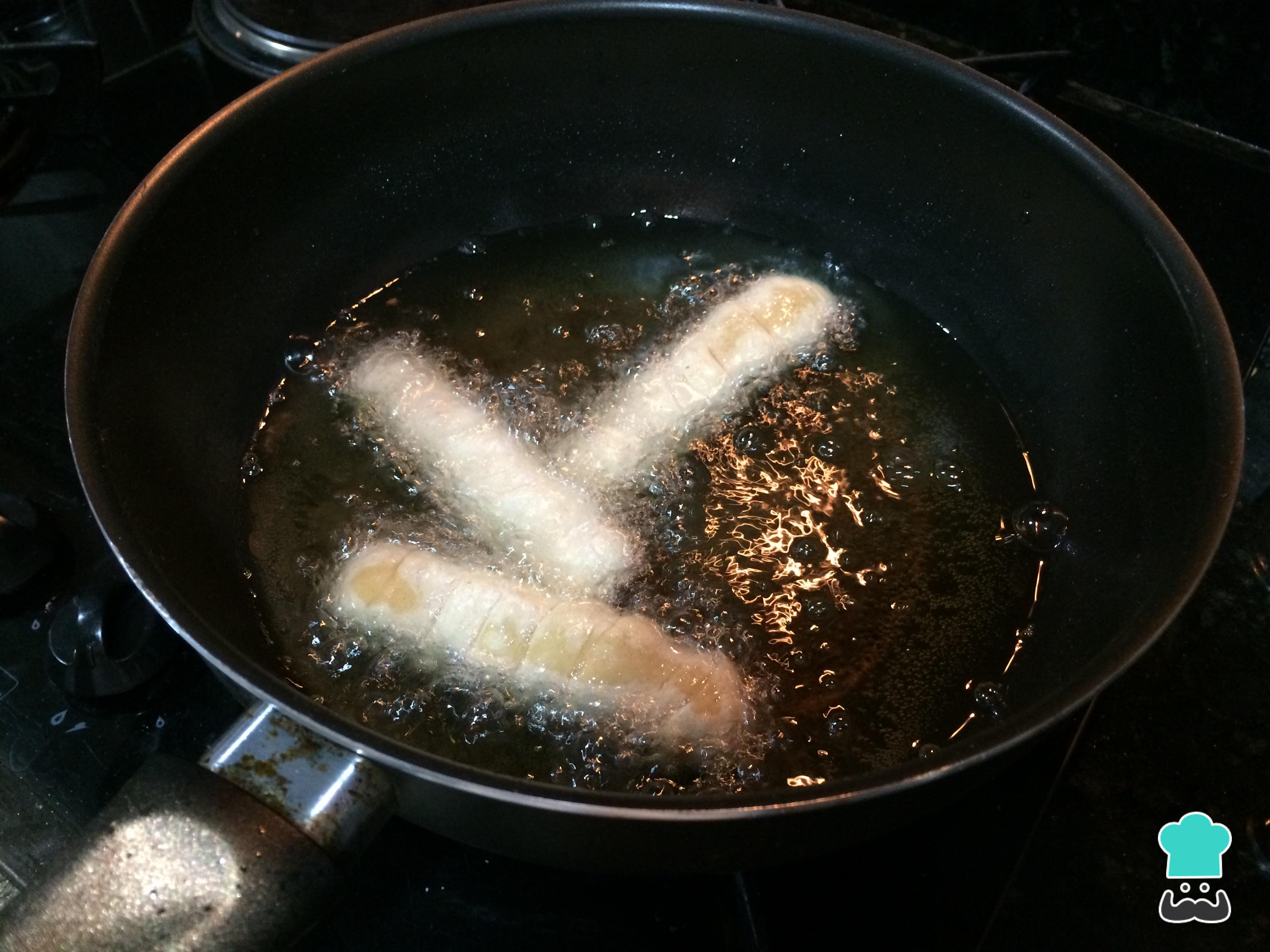 Freír los tequeños en abundante aceite, a temperatura media, durante 5 minutos hasta que estén dorados, escurrir y reservar.
