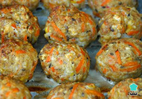 Formar las albóndigas y hornearlas a temperatura media hasta que estén doraditas.