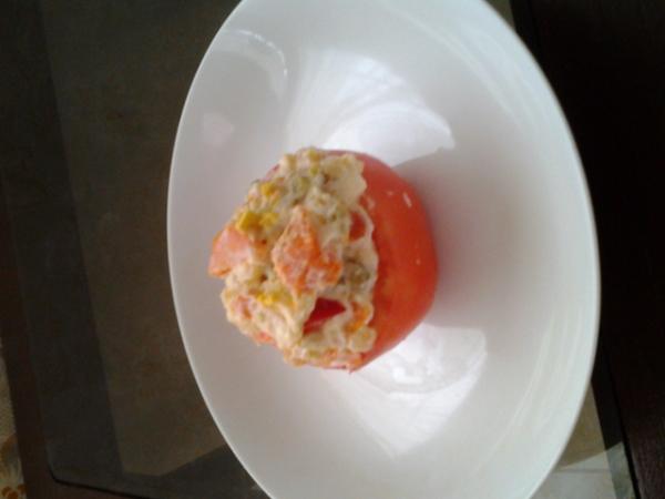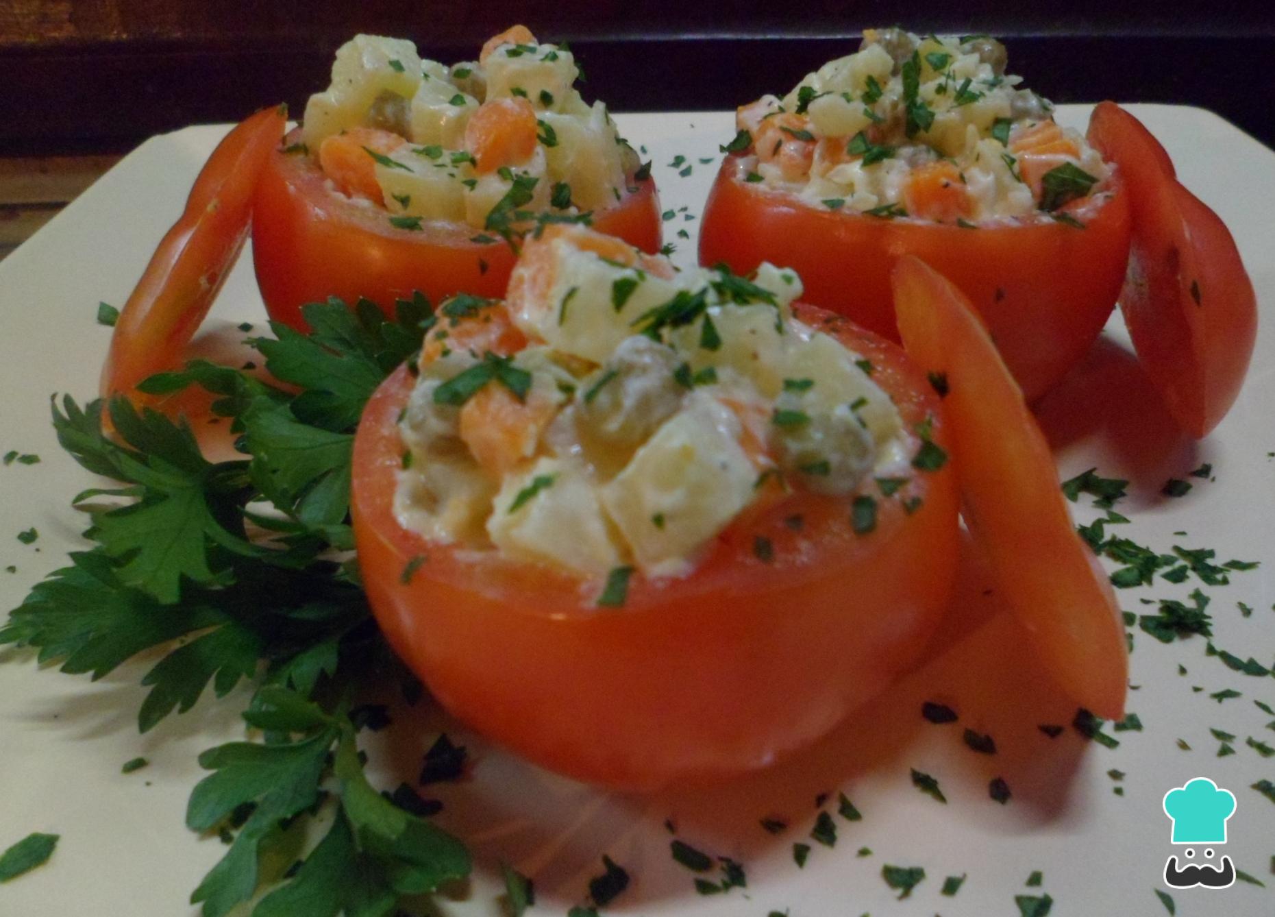 Cómo hacer Tomates rellenos con ensalada rusa: