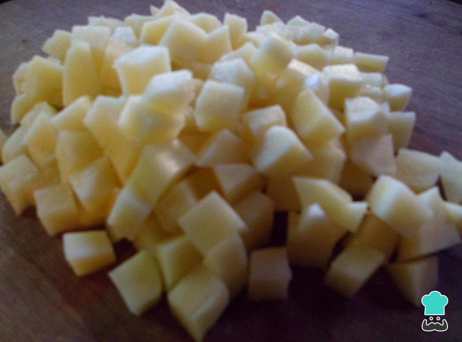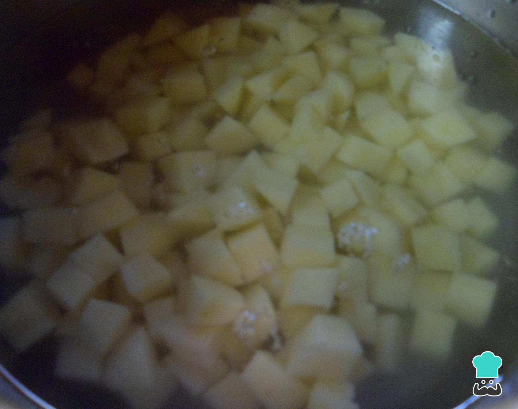 En una olla aparte cocinamos las papas por espacio de 4 minutos aproximadamente, dependiendo del tamaño de las mismas, y cuidando que no se pasen de cocción.