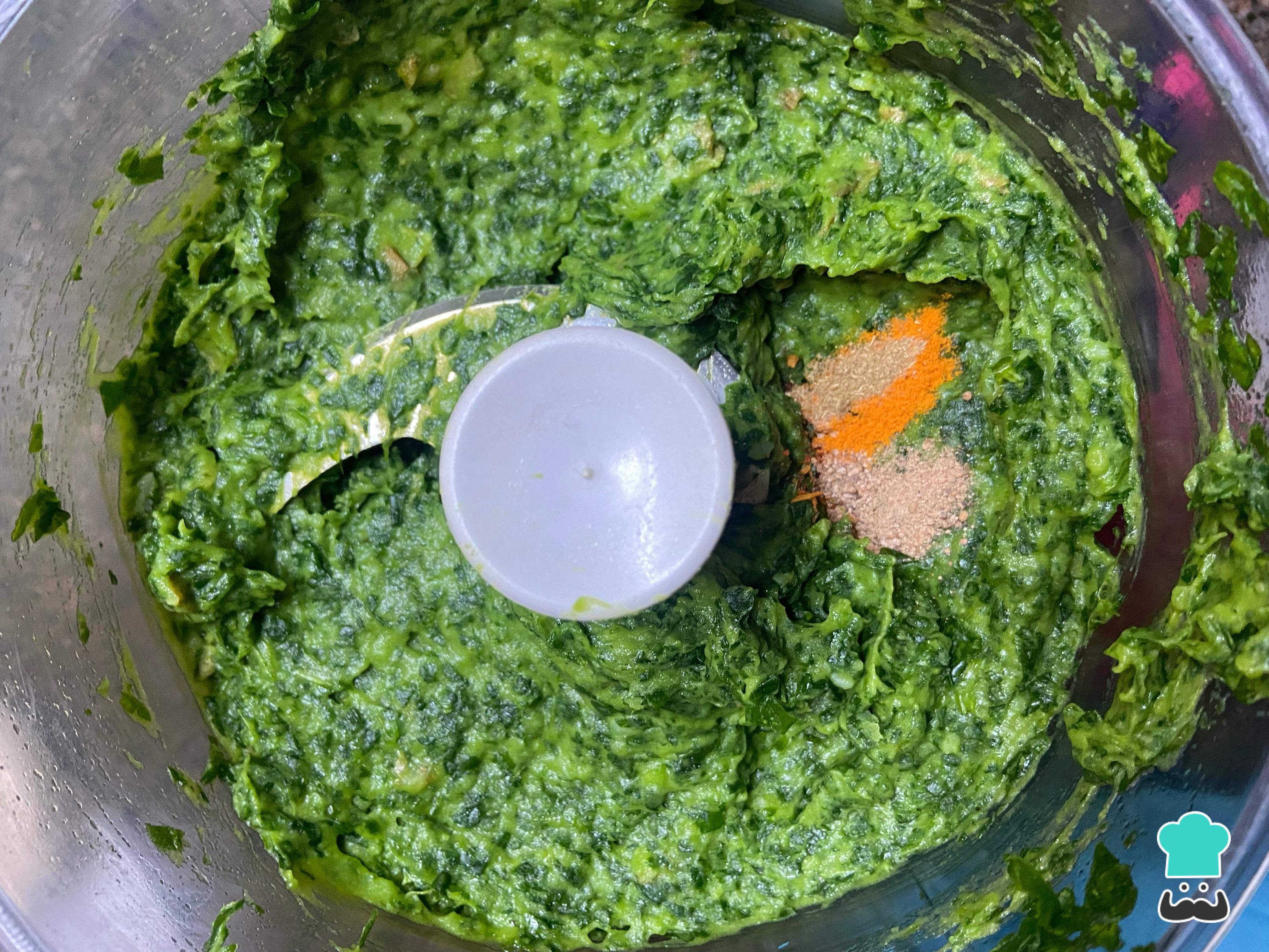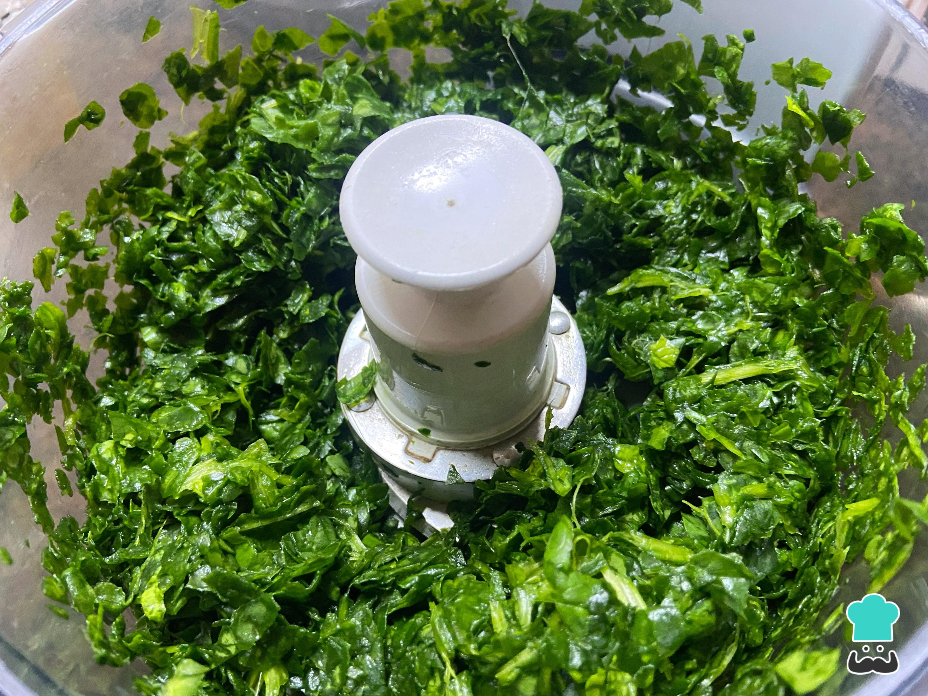 Procesa ligeramente las hojas de espinaca previamente limpias y secas.