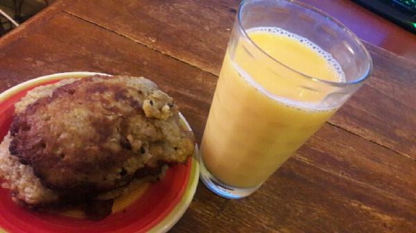 Asi quedo mi desayuno delicioso acompañado con jugo de frutas.