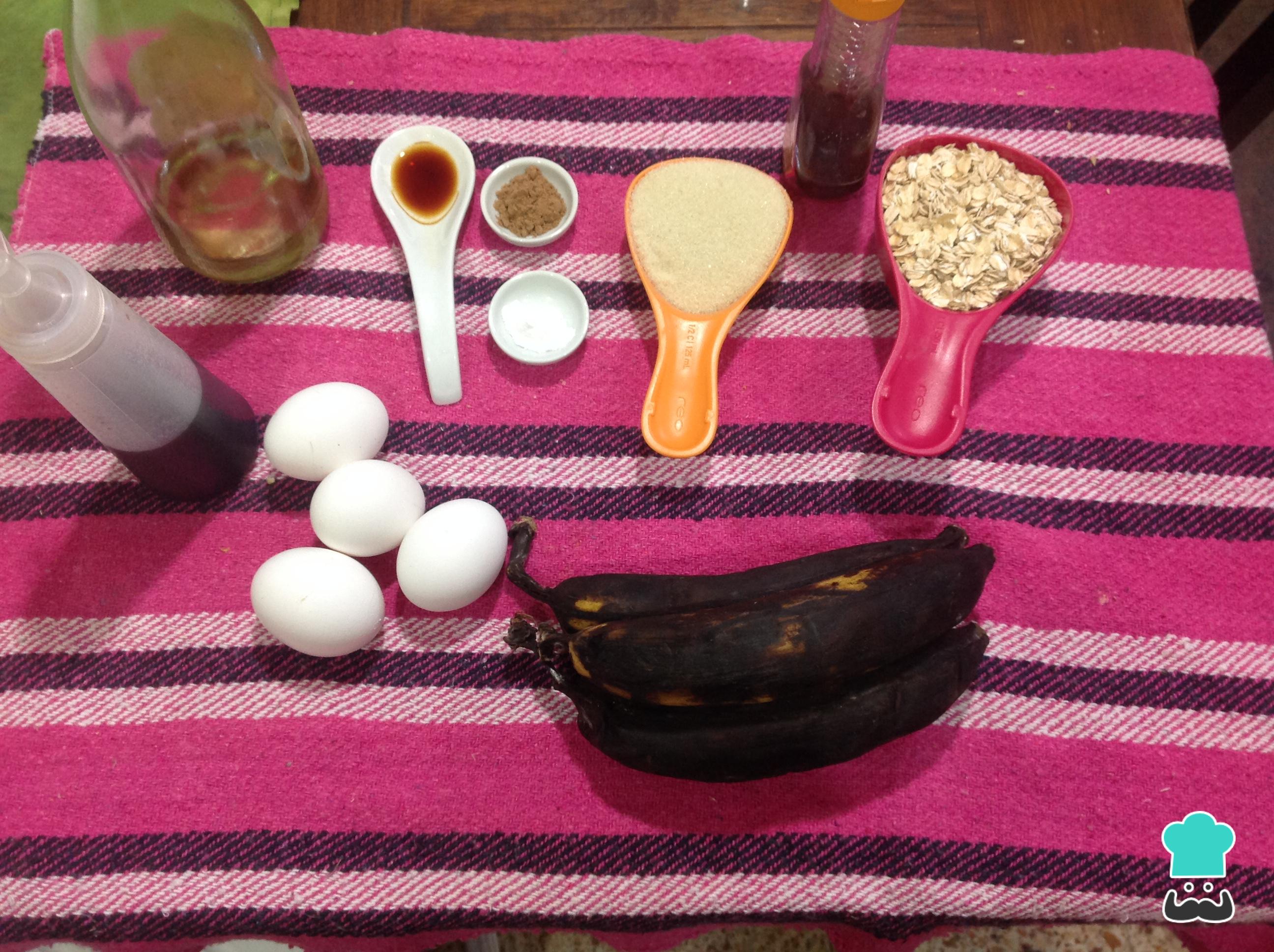 Para preparar las torrejas de plátano macho vamos a juntar todos los ingredientes necesarios.