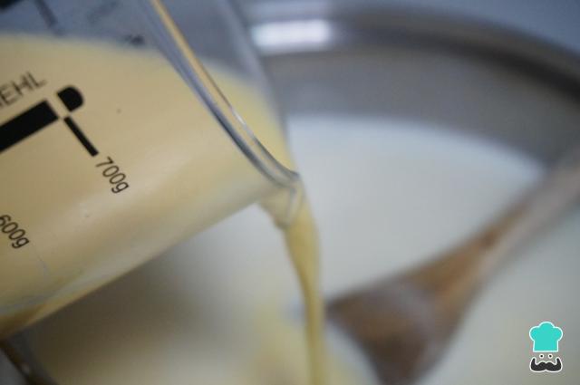 Reserva la cuarta parte de leche restante en un recipiente aparte. Incorpórale las yemas de huevo y y la harina de maíz. Bate enérgicamente para que no queden grumos en la masa.