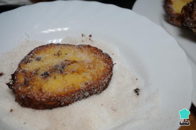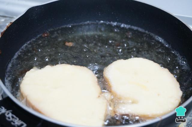 Cuando el aceite esté caliente, introduce las rodajas de pan ya empapadas. Deja que se doren bien por un lado, siempre vigilando que no se quemen y voltéalas para cocinarlas por el otro.