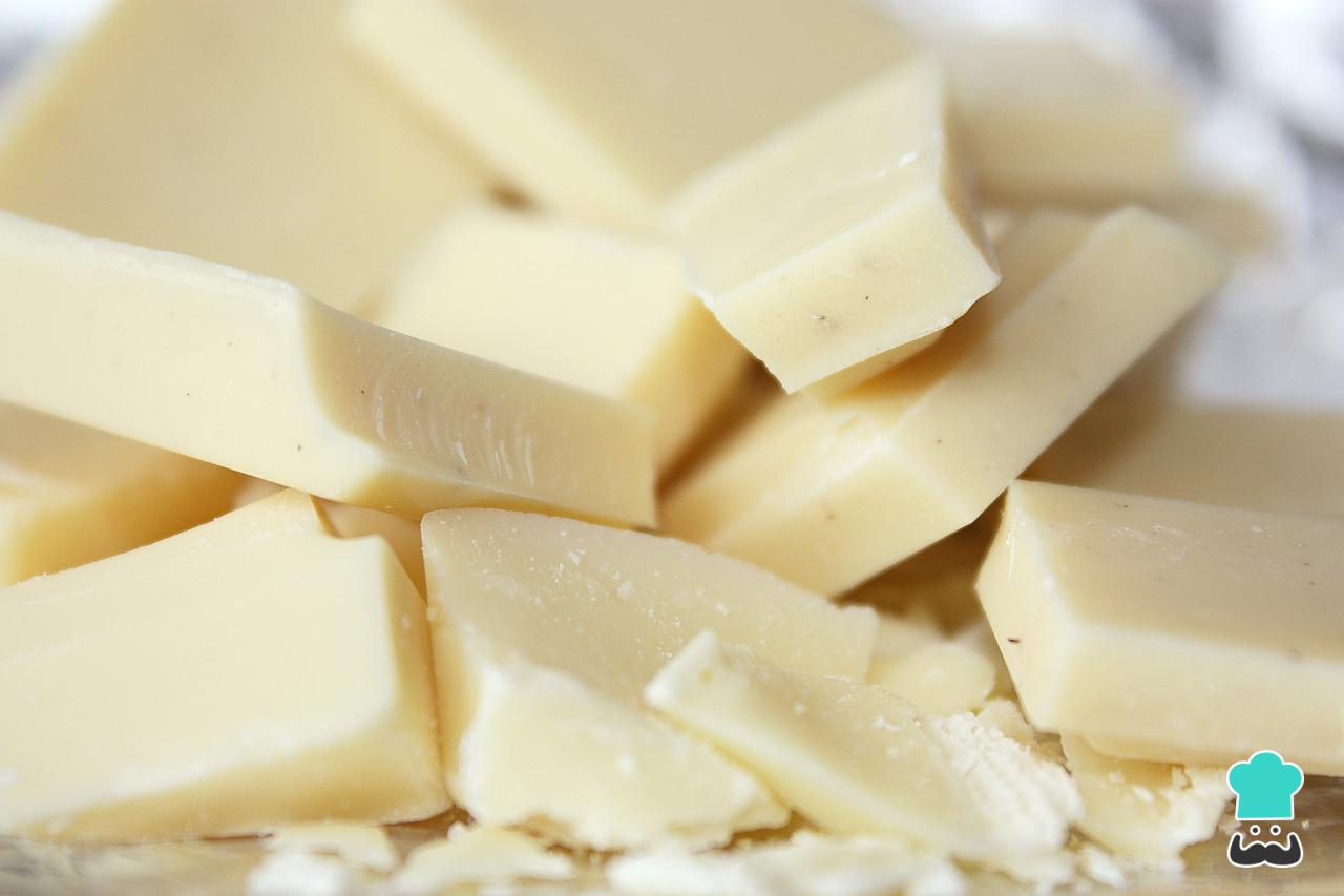 Parte la tableta de chocolate blanco en onzas pequeñas.