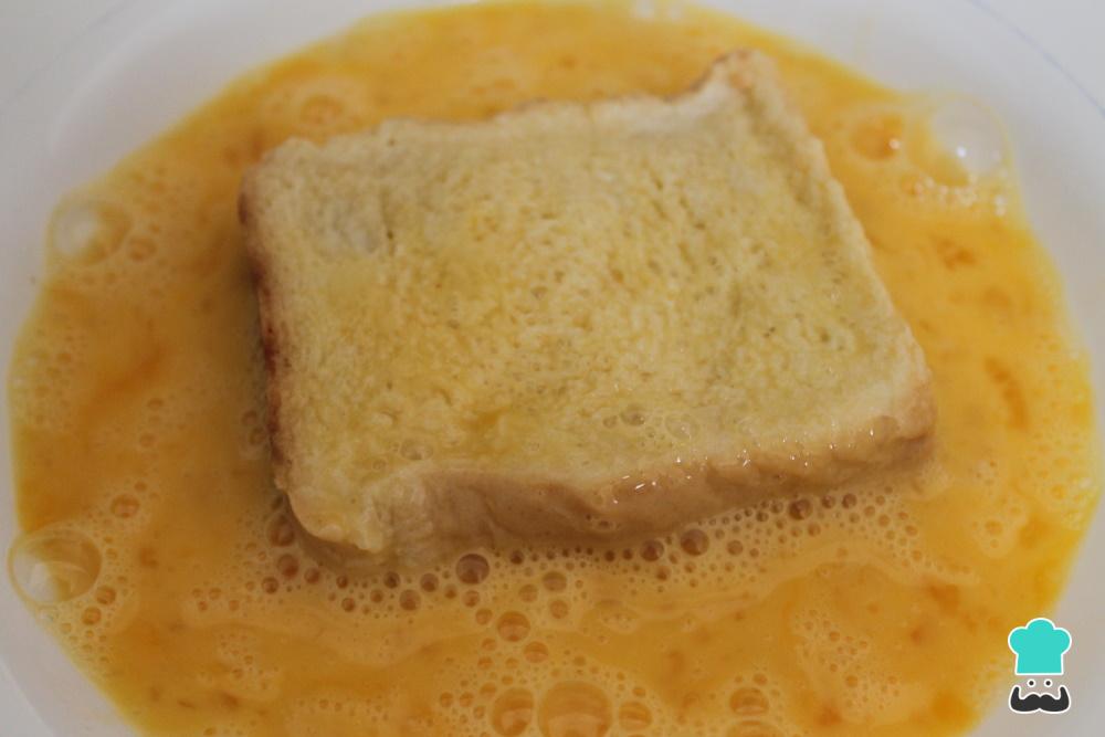 Bate los huevos. Saca las rebanadas de la leche, escúrrelas un poco y pásalas por el huevo, por ambas caras.