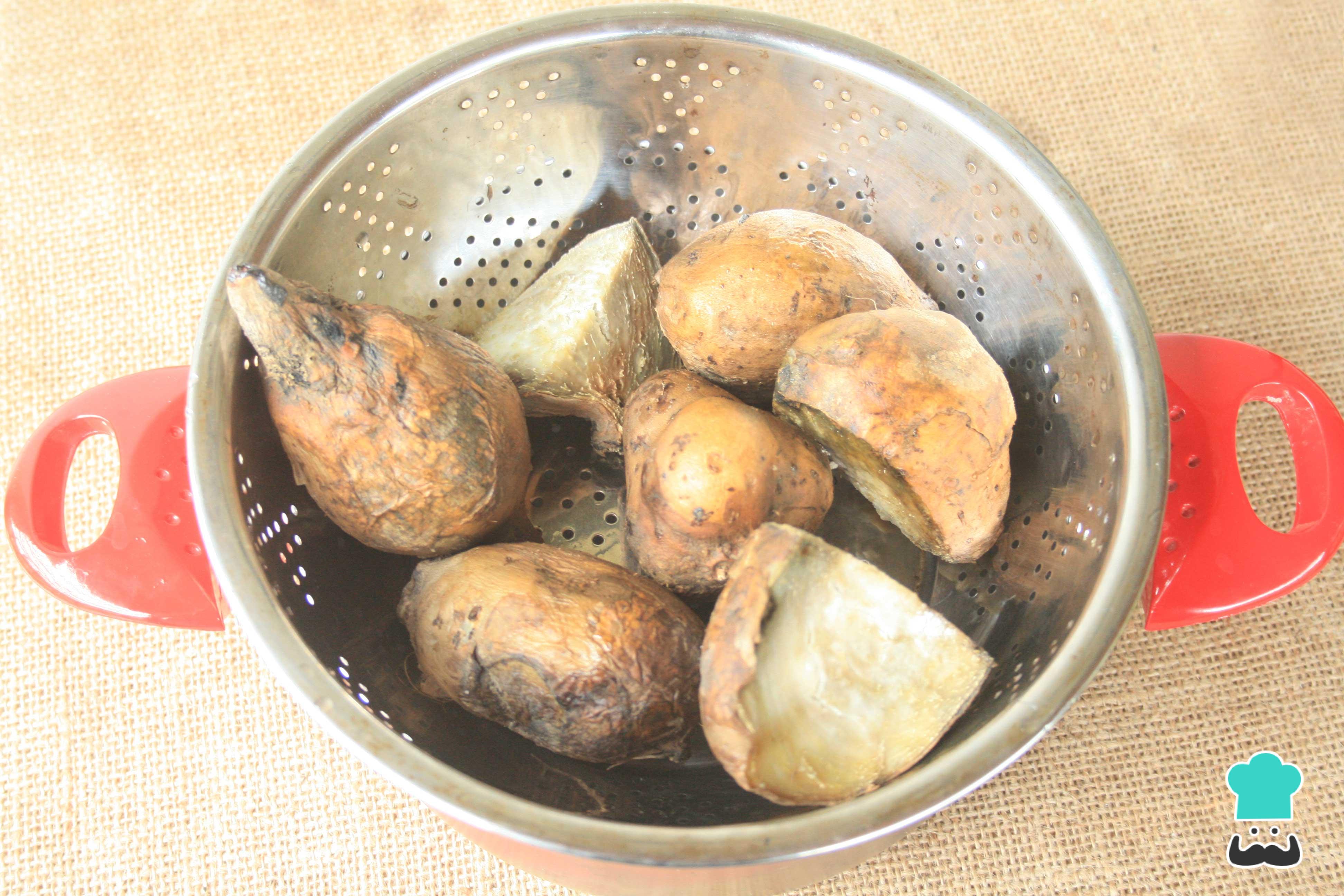 Cocina las batatas preferiblemente al vapor, o al horno, así no absorberán humedad. Si debes hervir la hortaliza, posteriormente escurre muy bien. El momento preciso de retirar las batatas del fuego será cuando las pinches y estén tiernas.