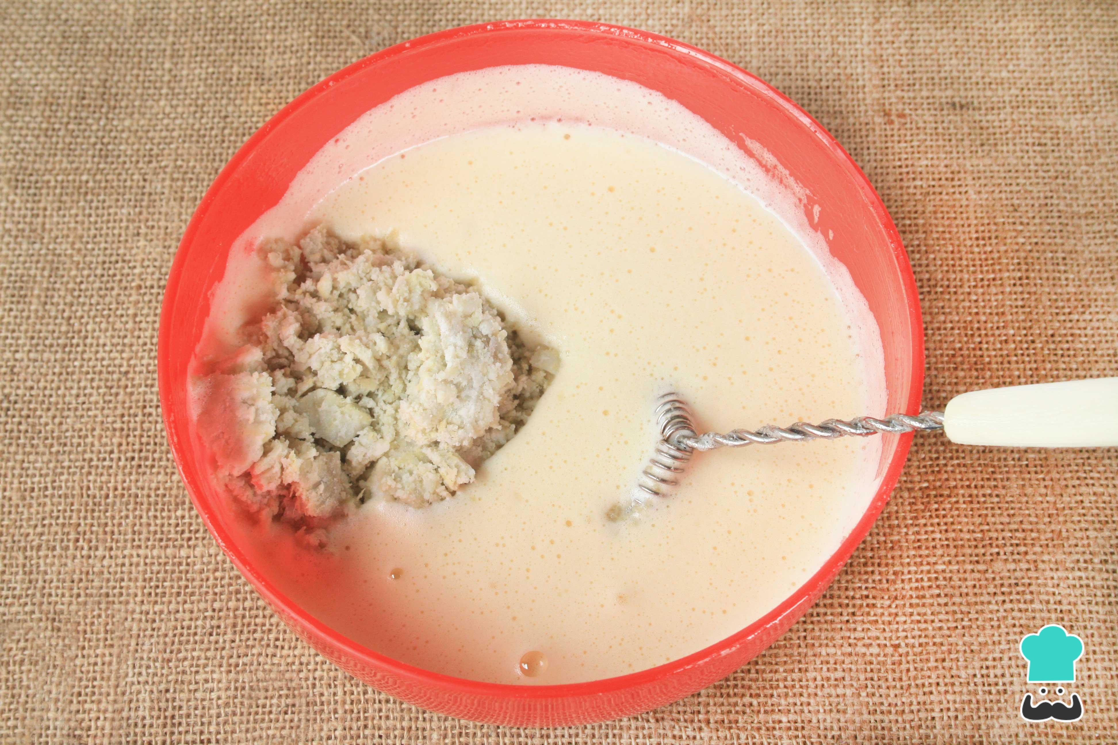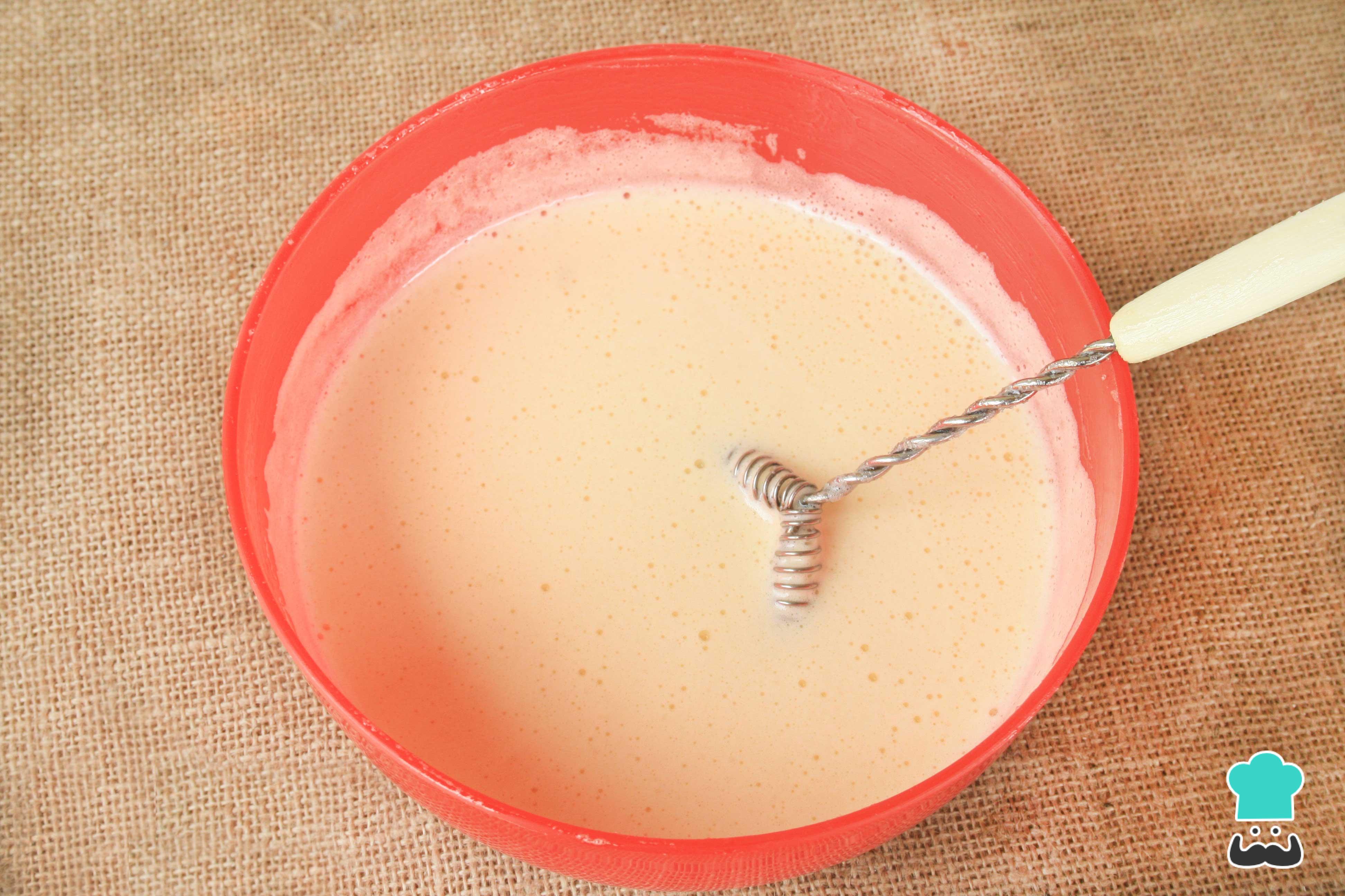 Utiliza un cuenco grande parar batir los huevos con el azúcar. Sabrás que la preparación está en su punto cuando veas la consistencia algo cremosa.