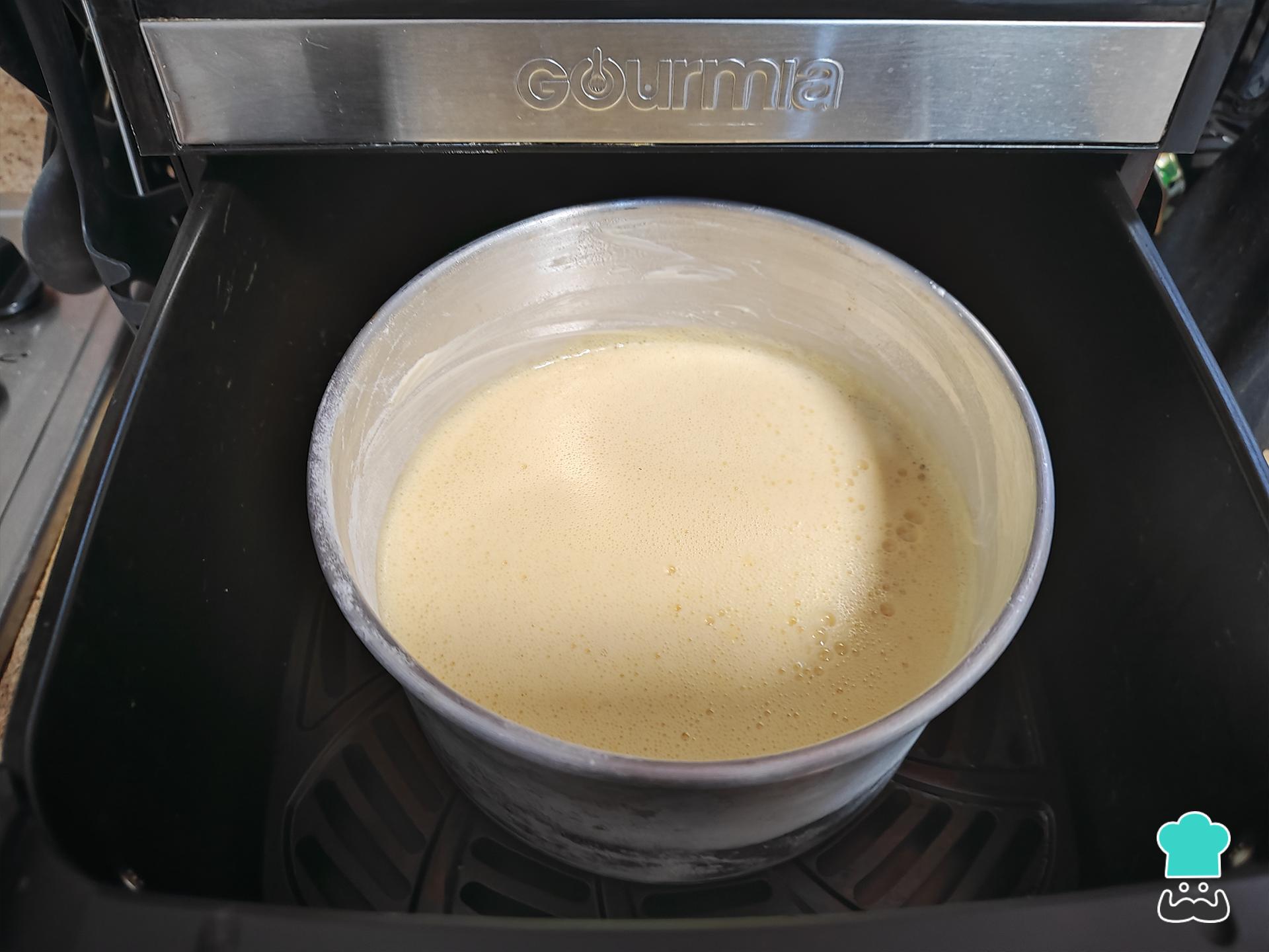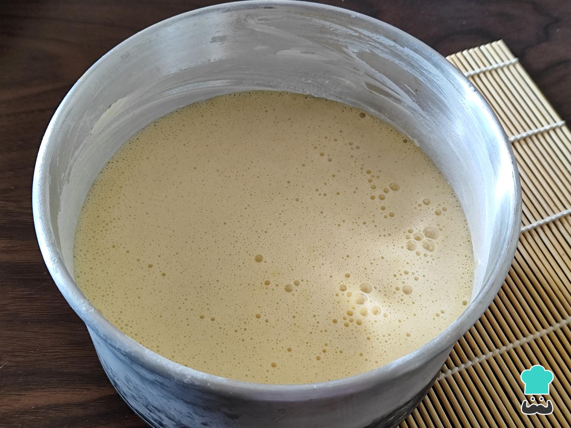 Asegúrate de que los ingredientes se licuan por completo. Luego, pasa la mezcla al molde previamente engrasado y alisa la superficie si se generaron burbujas, proporciona ligeros golpes para que se asiente bien la mezcla.
