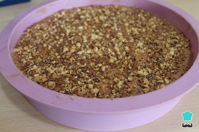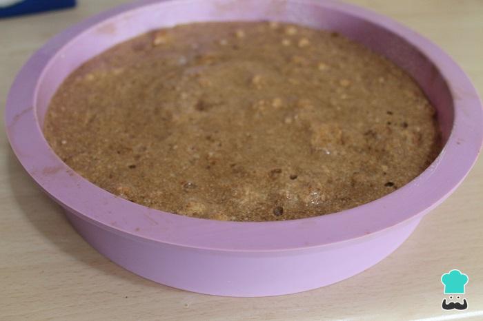 Vertemos la mezcla del bizcocho de lentejas en un molde redondo de unos 24 cm de diámetro y nivelamos la superficie.