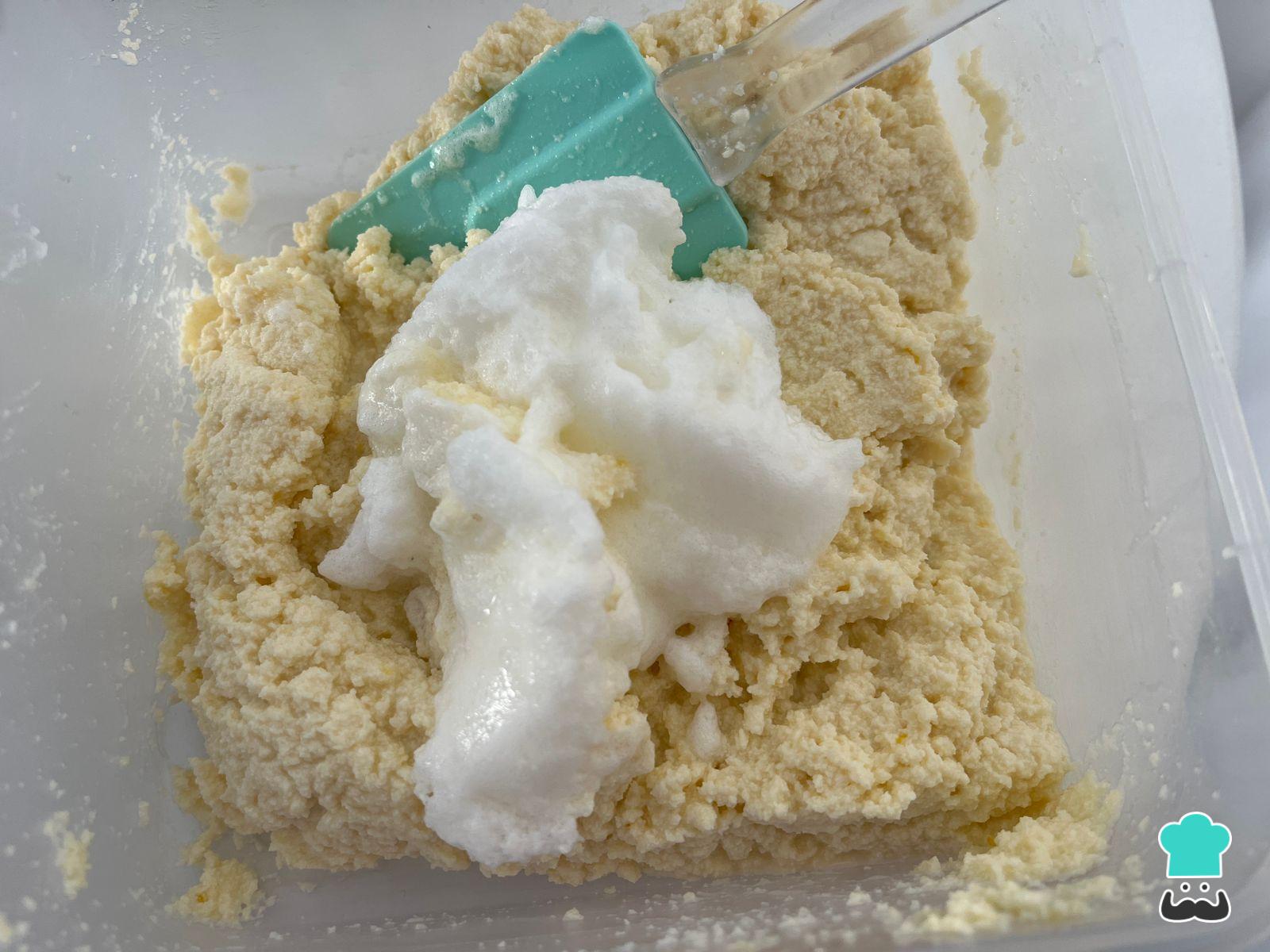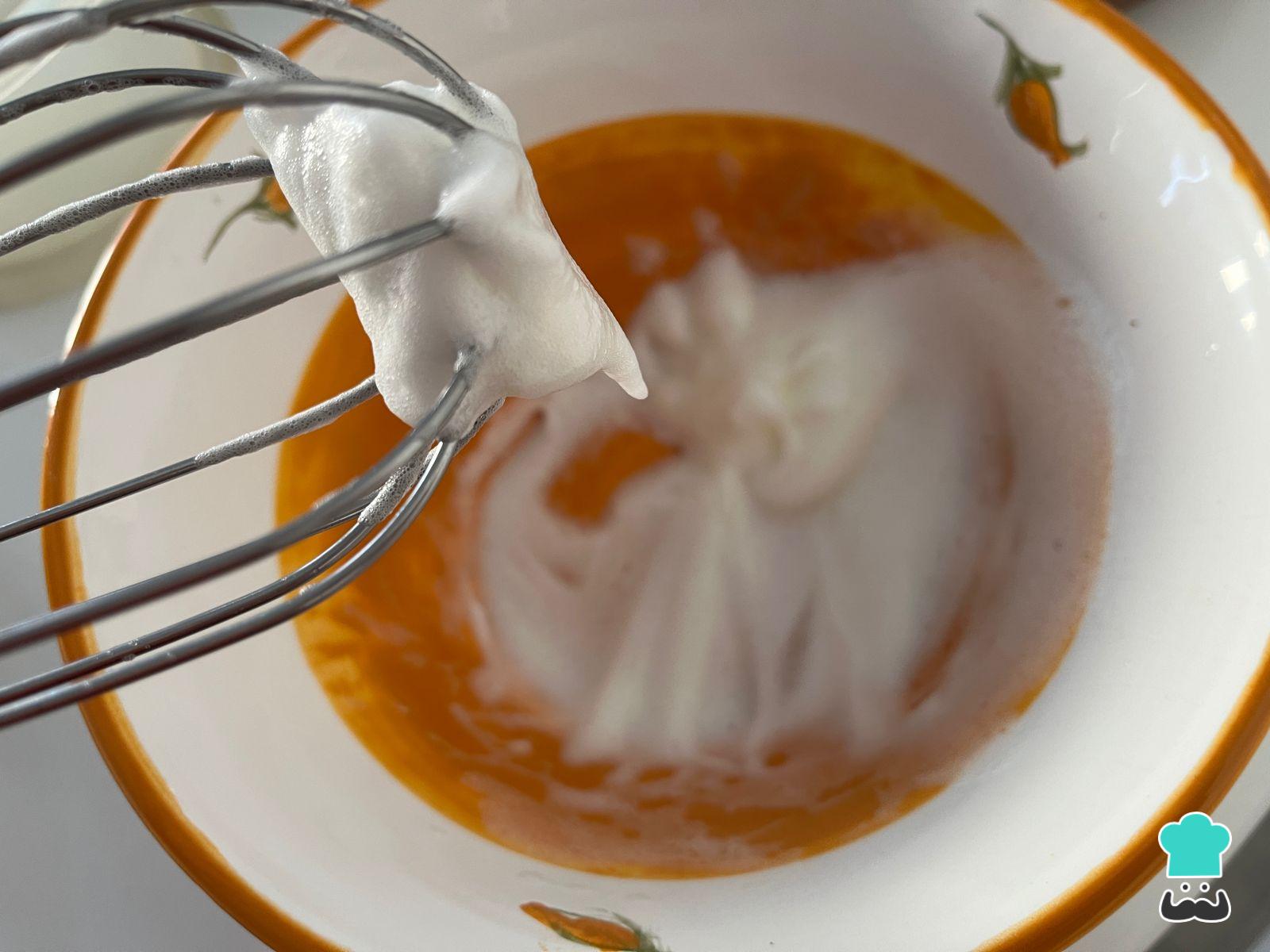 Añade la clara batida e integra con movimientos envolventes para que no se baje.