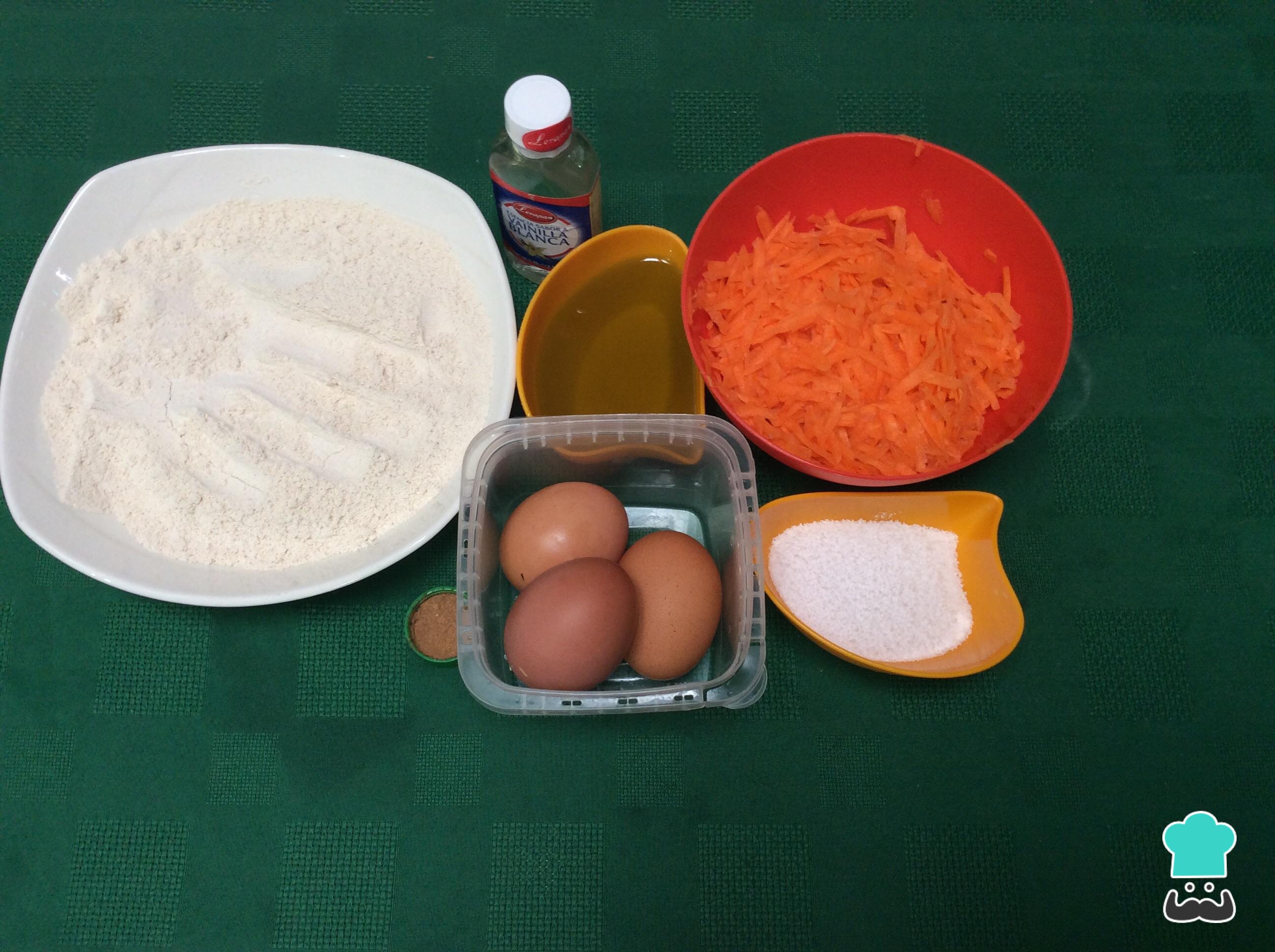 Para esta torta de zanahoria ideal para diabéticos lo primero que tienes que hacer es alistar todos los ingredientes, recuerda que estos son para una torta mediana de 15 porciones pequeñas.