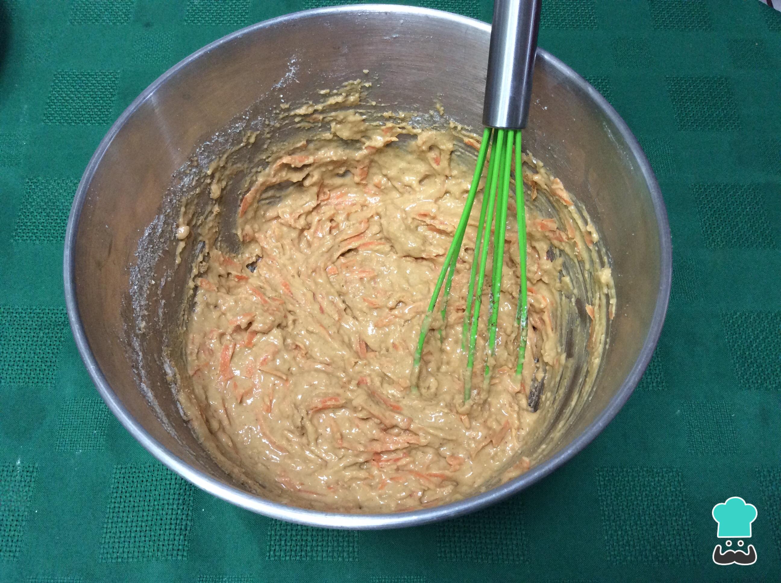 Agrega la zanahoria rallada y por ultimo la harina de avena, mezcla hasta integrar.