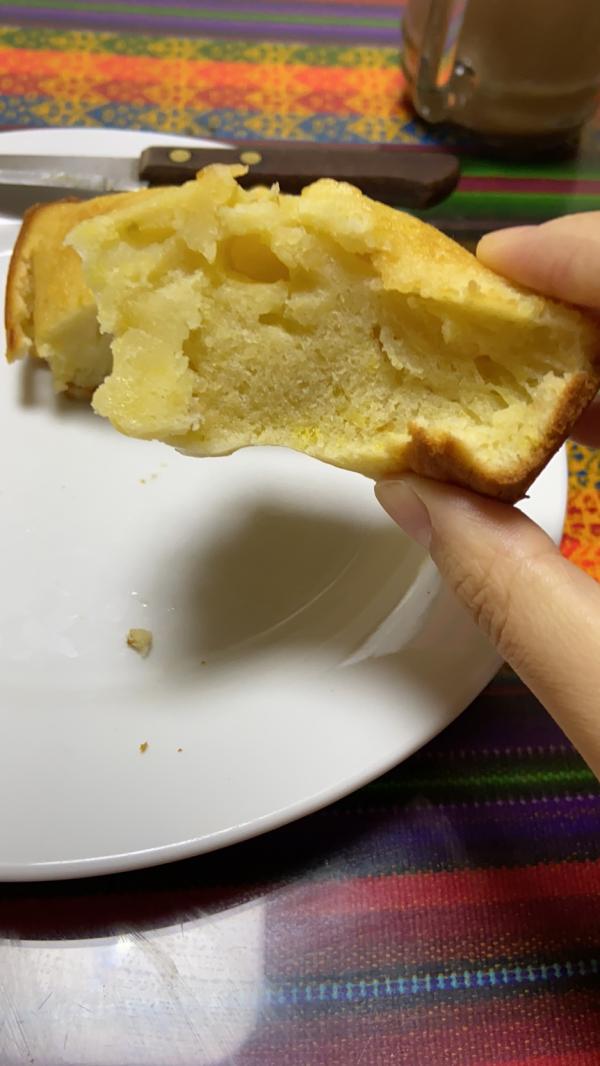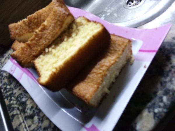 Hace un rato está listo ami torta con esta receta, solo que le agregué leudante (rotal) y la hice en budinera pues aunque no crean tengo mis dos torteras prestadas. Acá les muestro la foto