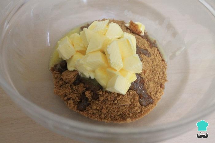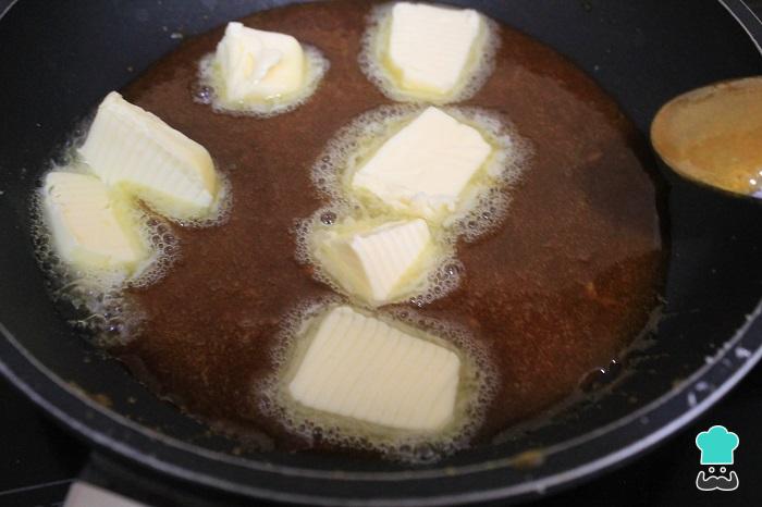 Incorporamos la mantequilla cortada en trozos y removemos para que se disuelva.
