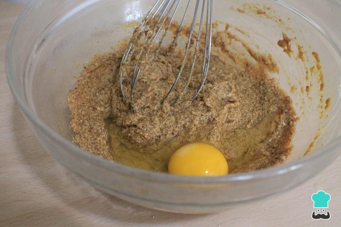 Añadimos un huevo y batimos hasta incorporarlo bien. Añadimos el otro e incorporamos a la mezcla también.