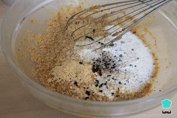 Incorporamos a la mezcla el cardamomo molido, el jengibre y las semillas de la vaina de vainilla para seguir con la masa de la tarta de pera invertida.