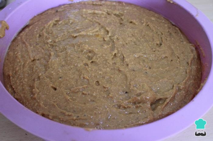 Vertemos la masa encima de las peras y nivelamos. Horneamos la torta de pera invertida a 180 ºC con calor arriba y abajo durante 20 minutos.