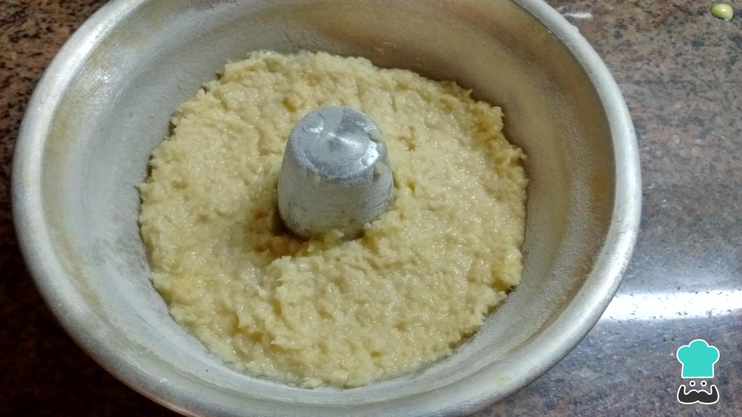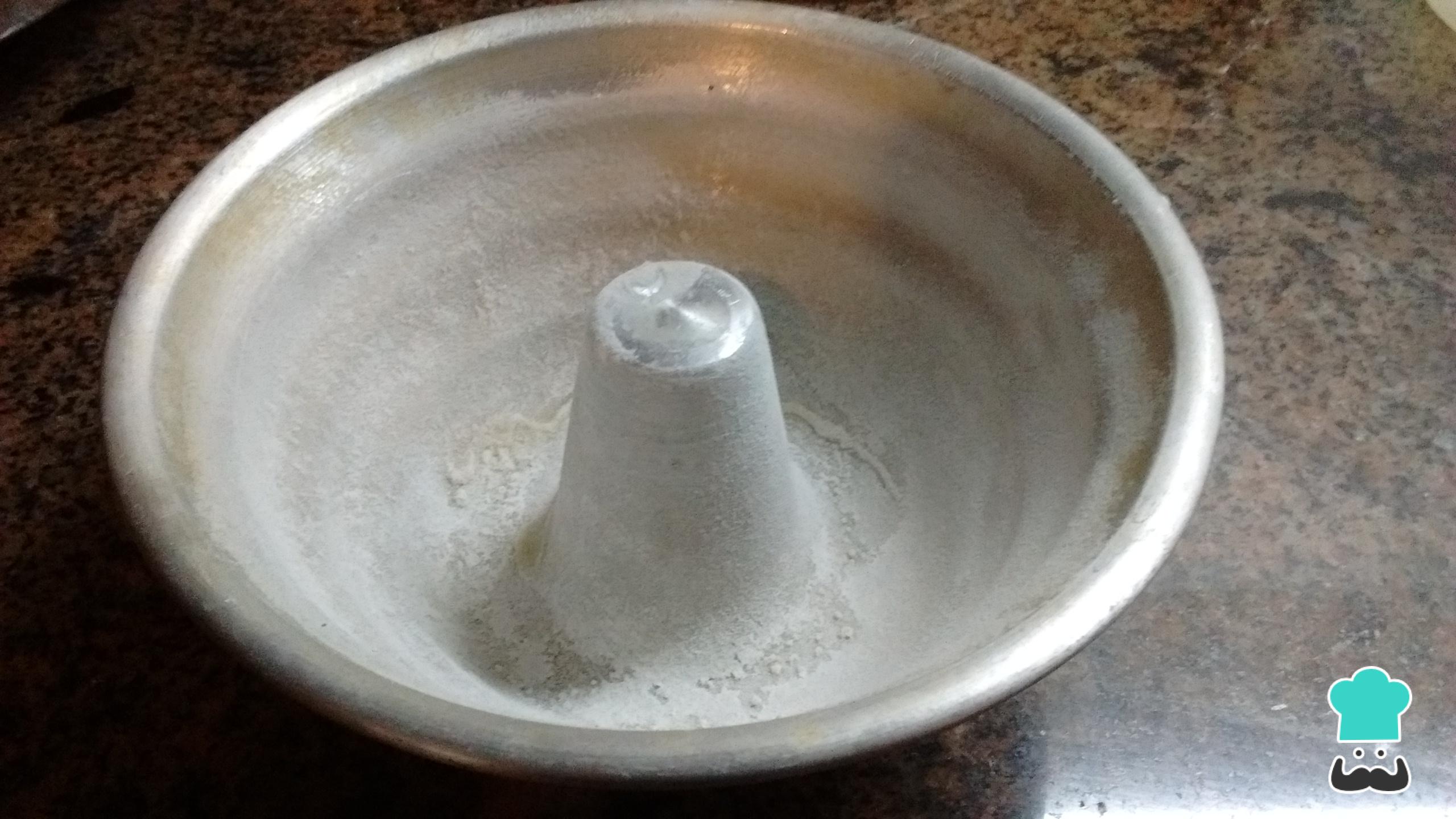 Lo primero que debes hacer, es encender el horno para precalentarlo a 180°C y luego acondiciona un molde de 16 cm, engrasando con aceite o manteca y enharinando con harina de coco.