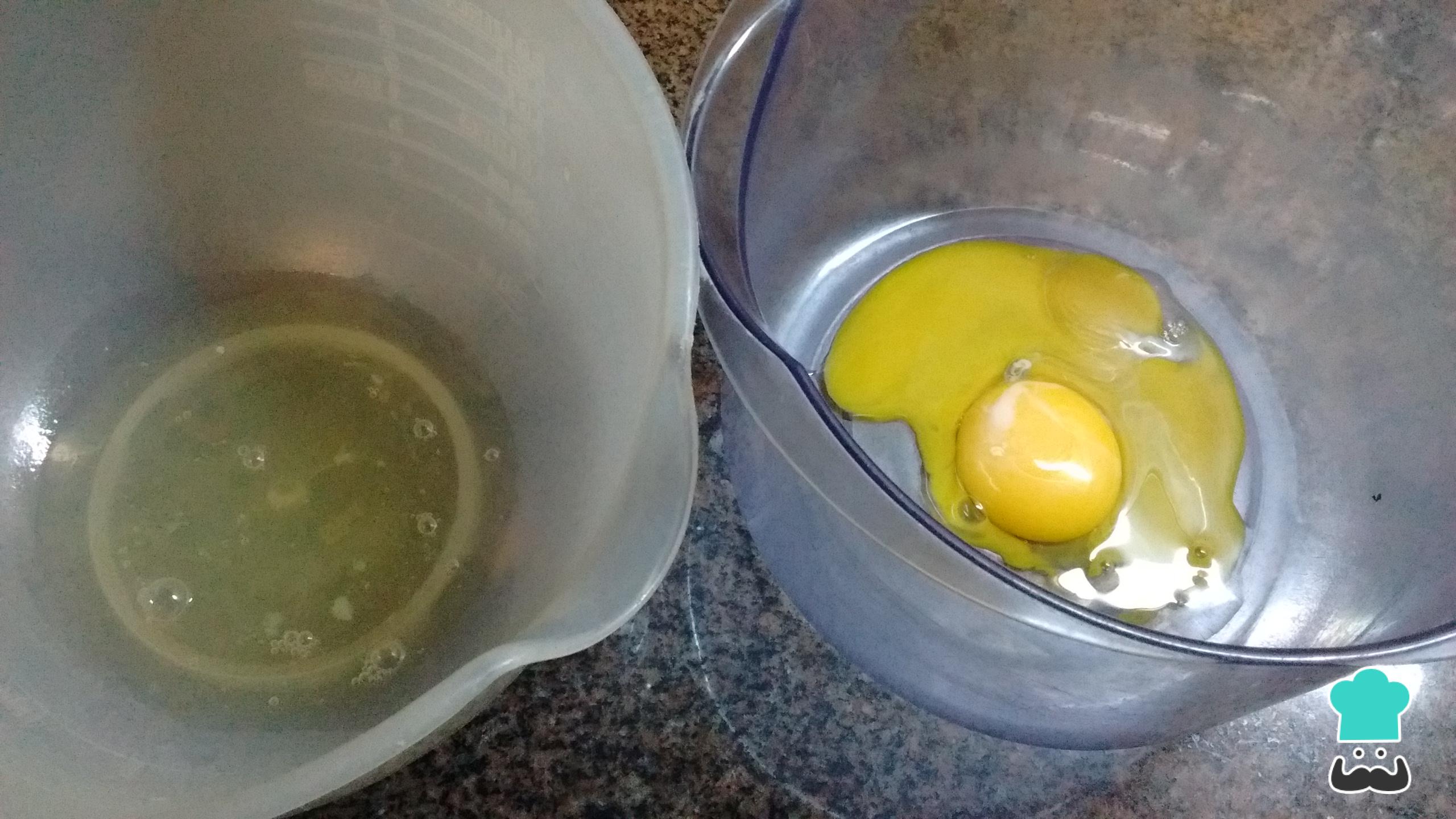 Separa en 2 recipientes distintos, las claras de las yemas de los huevos.