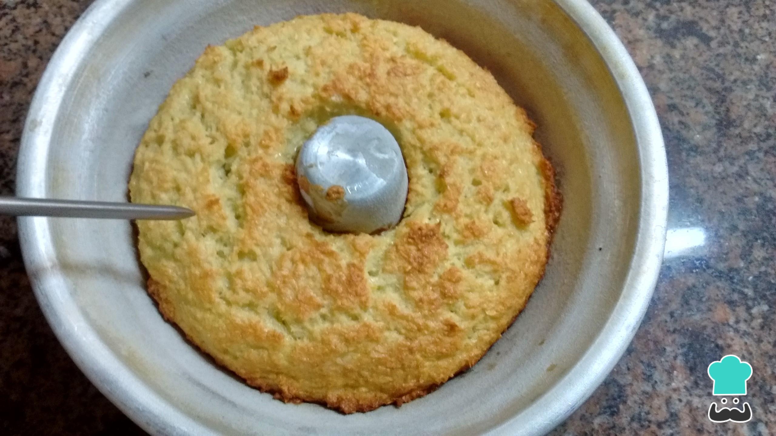 Comprueba que la torta está cocida, introduciendo un palillo en el centro. Si sale seco, puedes retirar del horno y dejar entibiar antes de desmoldar.
