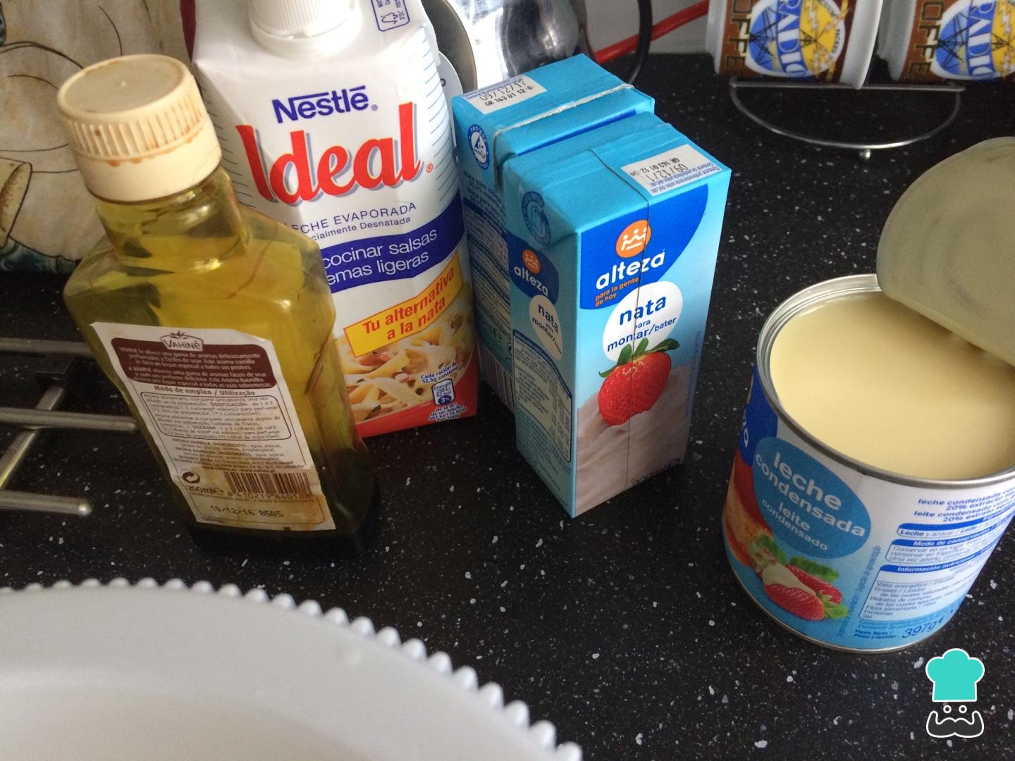 Cuando ya esté, dejar el bizcocho que se enfrié unos 10 minutos en su propio molde, luego retirar del molde y dejar que se termine de enfriar en una rejilla. Mientras esperamos podemos ir preparando la salsa de la torta tres leches con chantilly que es muy fácil. Con todos los ingredientes en un bol, mezclarlos con una varilla de mano y listo.