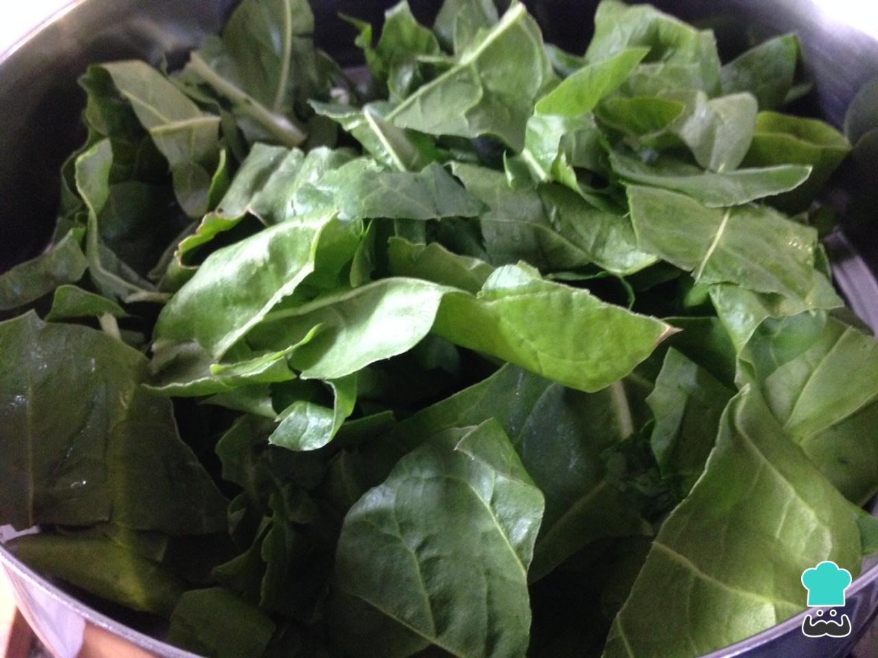 Para la preparación de esta tortilla de verduras sin huevo primero cocinaremos las acelgas. Puedes hervirlas o cocerlas al vapor, aunque te recomiendo que las hagas al vapor porque hervidas cogen mucha agua. En ambos casos con cinco minutos será suficiente.