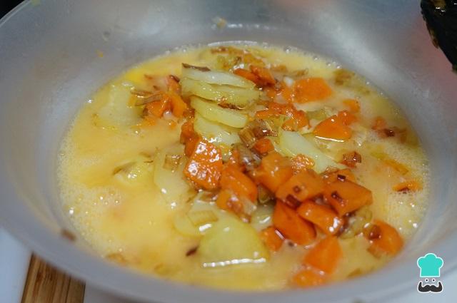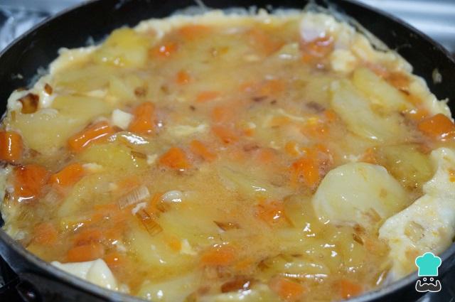 Para hacer una tortilla de calabaza baja en calorías, el truco está en la cocción de las verduras, ya que lo que incrementa el aporte calórico es el aceite que se utiliza para freír. Así, podemos cocer las patatas, la calabaza y el puerro, por ejemplo. Una vez cocidos los alimentos, se escurren, se mezclan con los huevos batidos y se hace la tortilla.