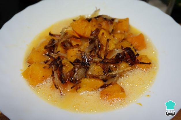 La tortilla de calabaza y cebolla es un plato muy jugoso y con mucho sabor. Esta elaboración se prepara igual que la tortilla tradicional, solo debes cocer la calabaza antes, en este caso, se puede decir que sustituyes la patata por la calabaza. Una tortilla rica, saludable y rápida de preparar, mucho más ligera que la tradicional. Además, debes saber que la calabaza aporta fibra, vitaminas y minerales. Por otro lado, si te gusta también puedes hacer al horno la calabaza.
