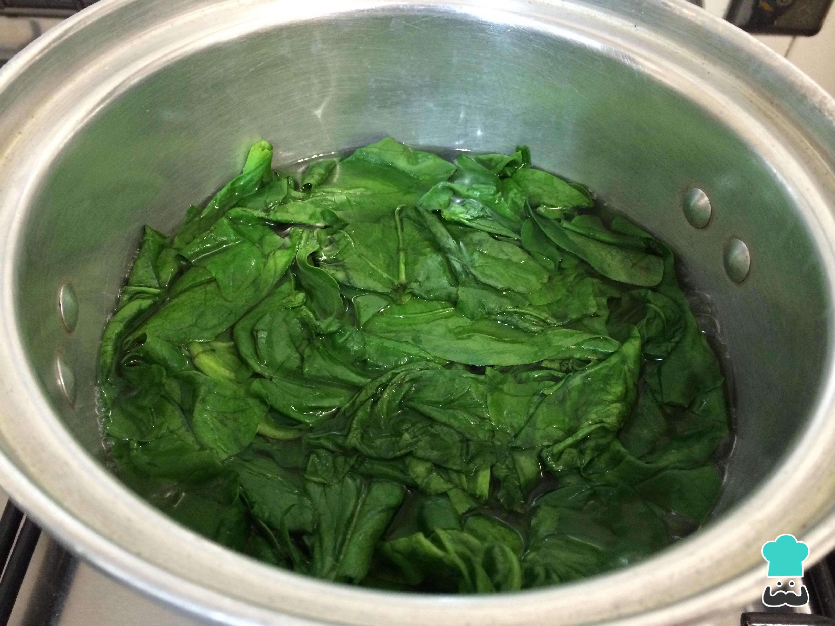 En una olla con agua hirviendo, añadir las espinacas previamente lavadas y cocinar aproximadamente 4 minutos.