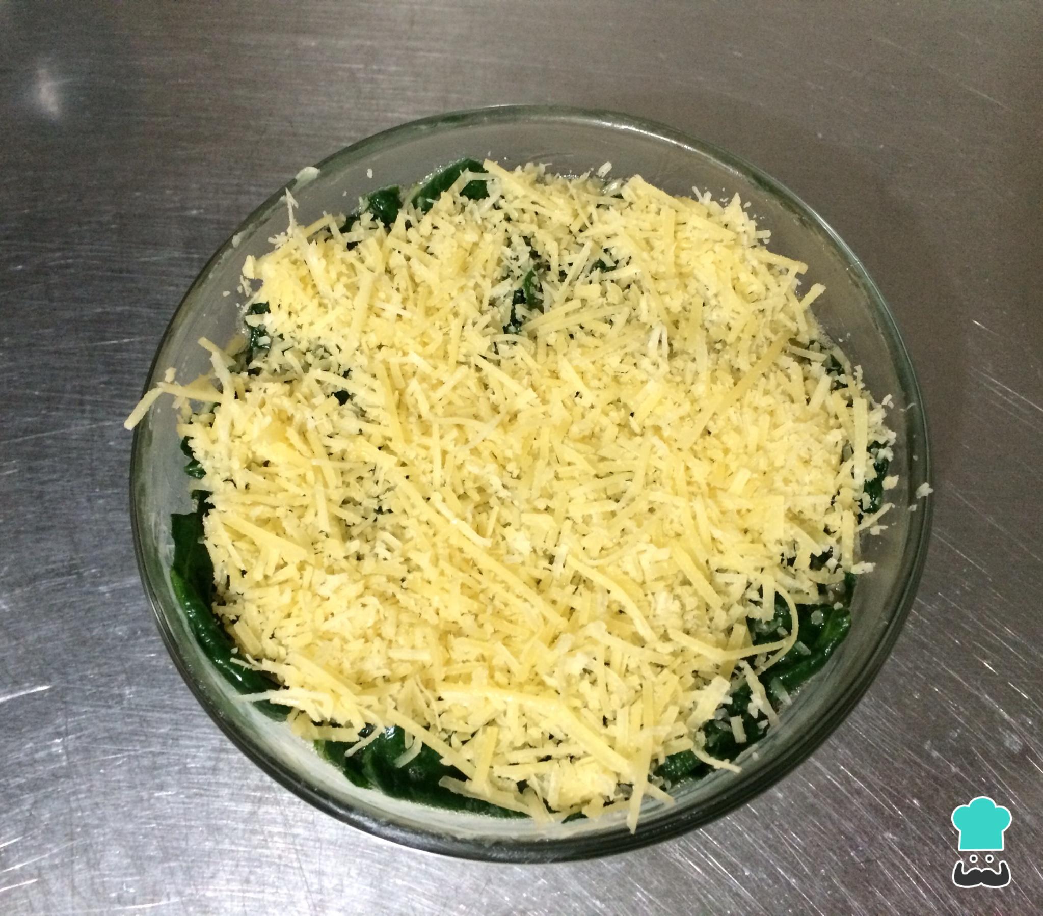 Para finalizar la tortilla, añadir el resto de las espinacas y cubrir con el queso parmesano rallado. Hornear a 180º C. durante 15 minutos hasta dorar.