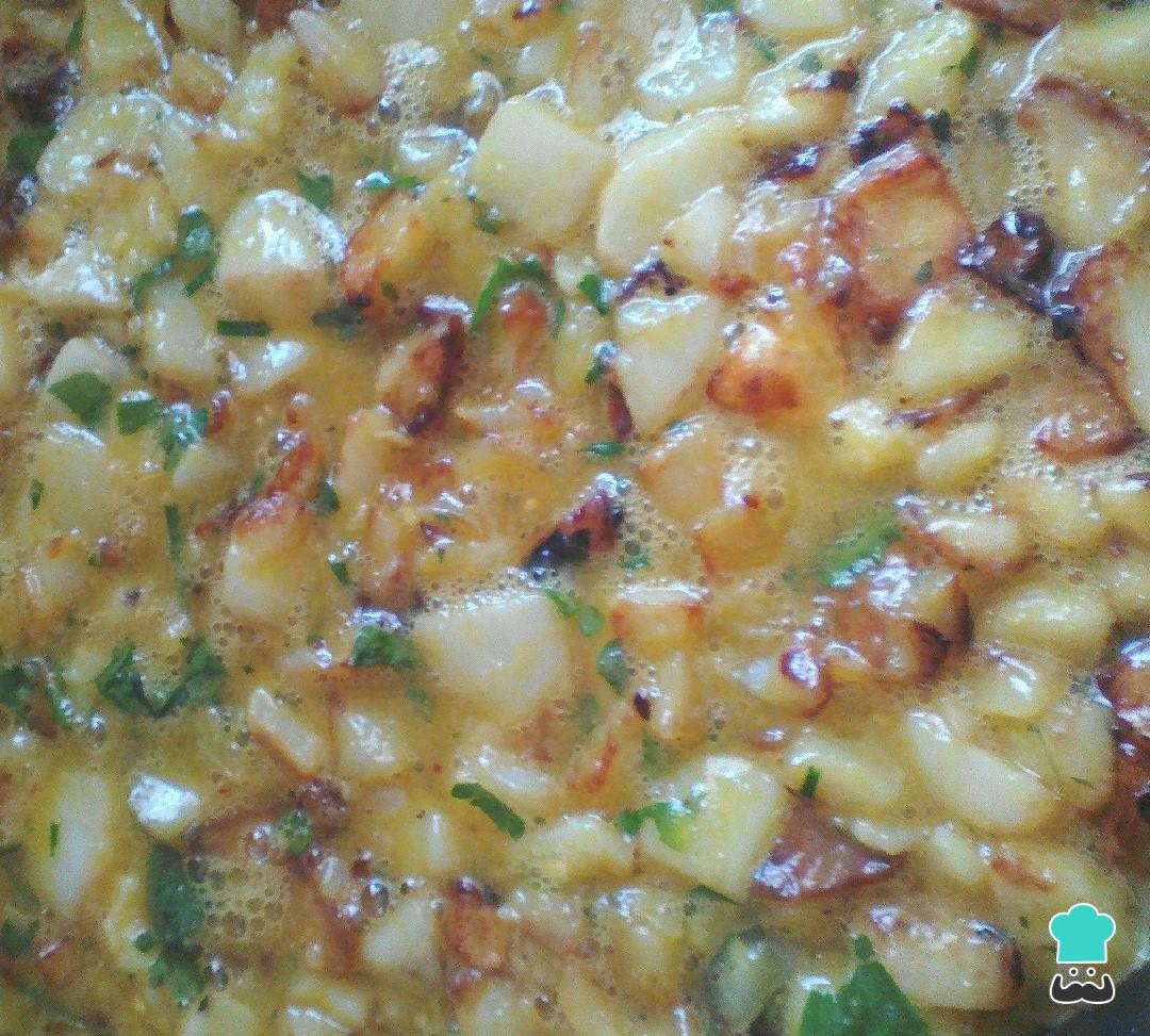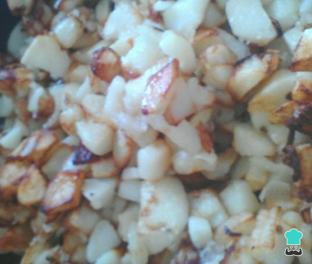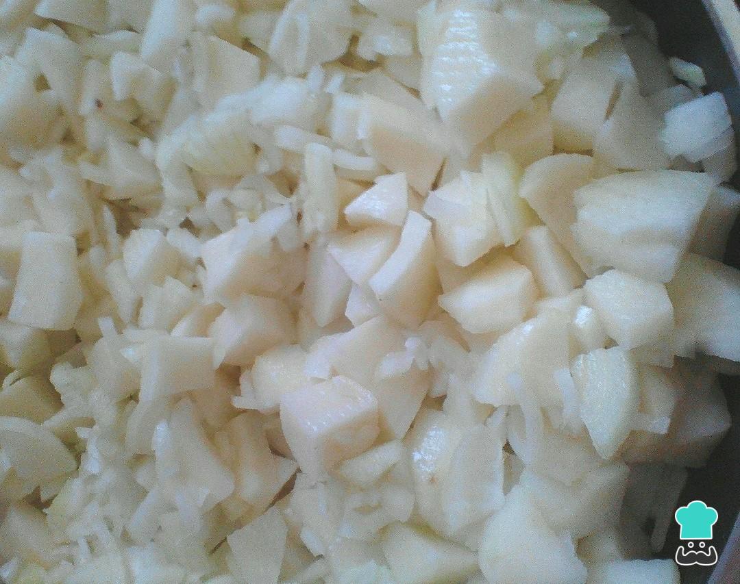 Freír en aceite caliente las papas y la cebolla.