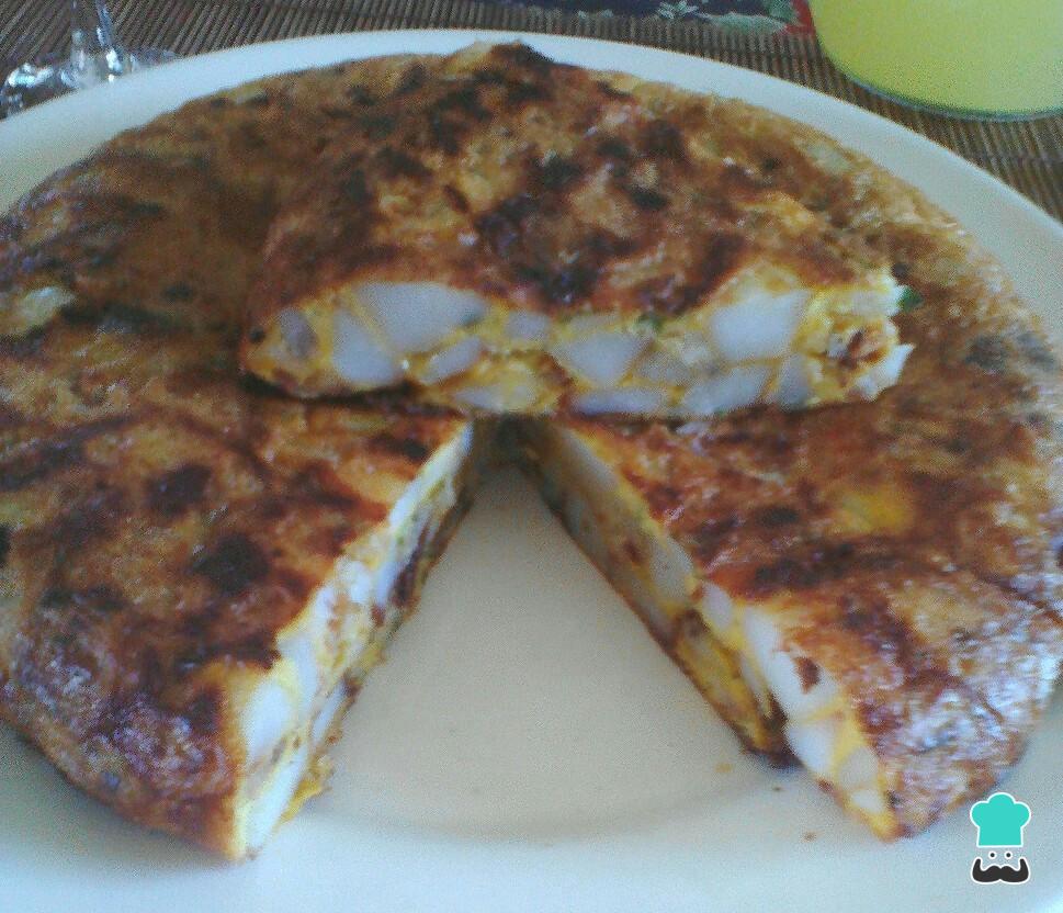 Receta de Tortilla de papas con huevo de avestruz