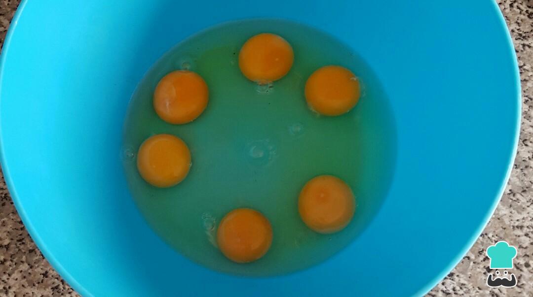 Mientras, bate los huevos aparte junto con una pizca de sal. Esta vez haremos una tortilla de 6 huevos pero modificando las cantidades podrás hacer una más pequeña.