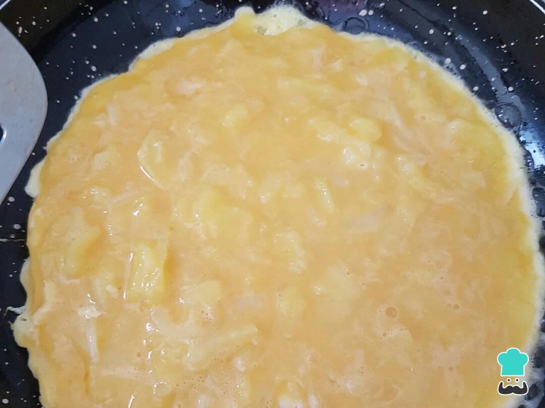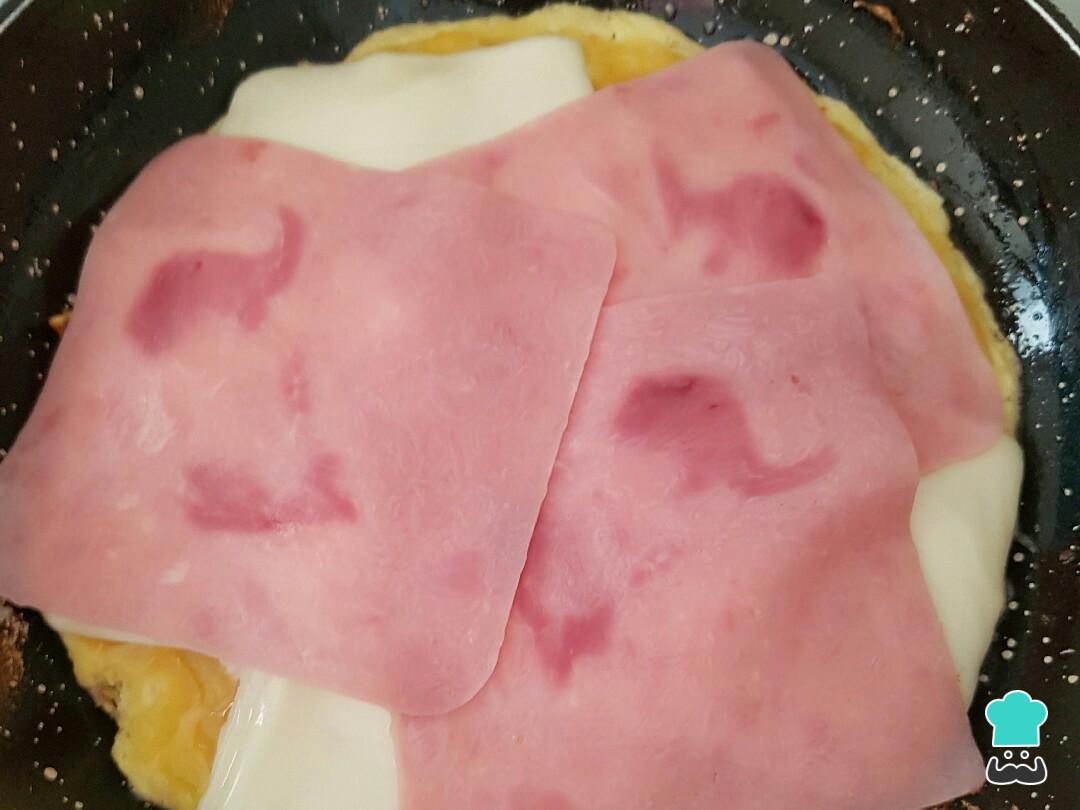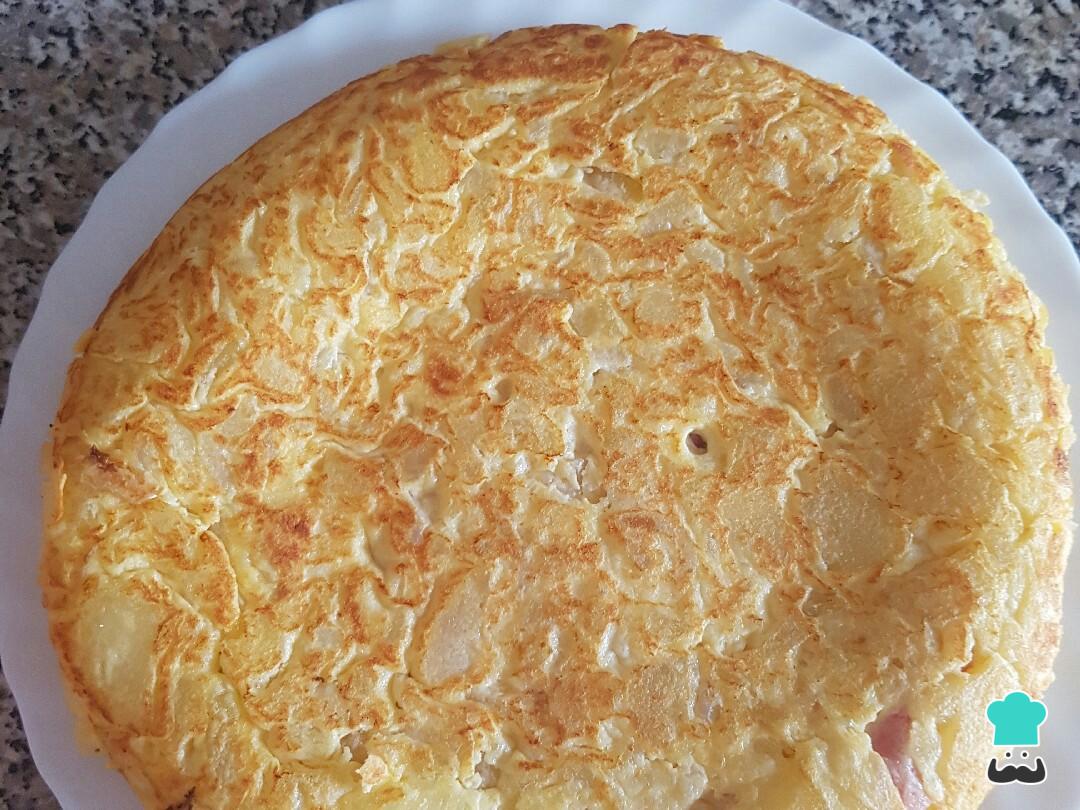 Cómo hacer Tortilla de patata con jamón y queso: