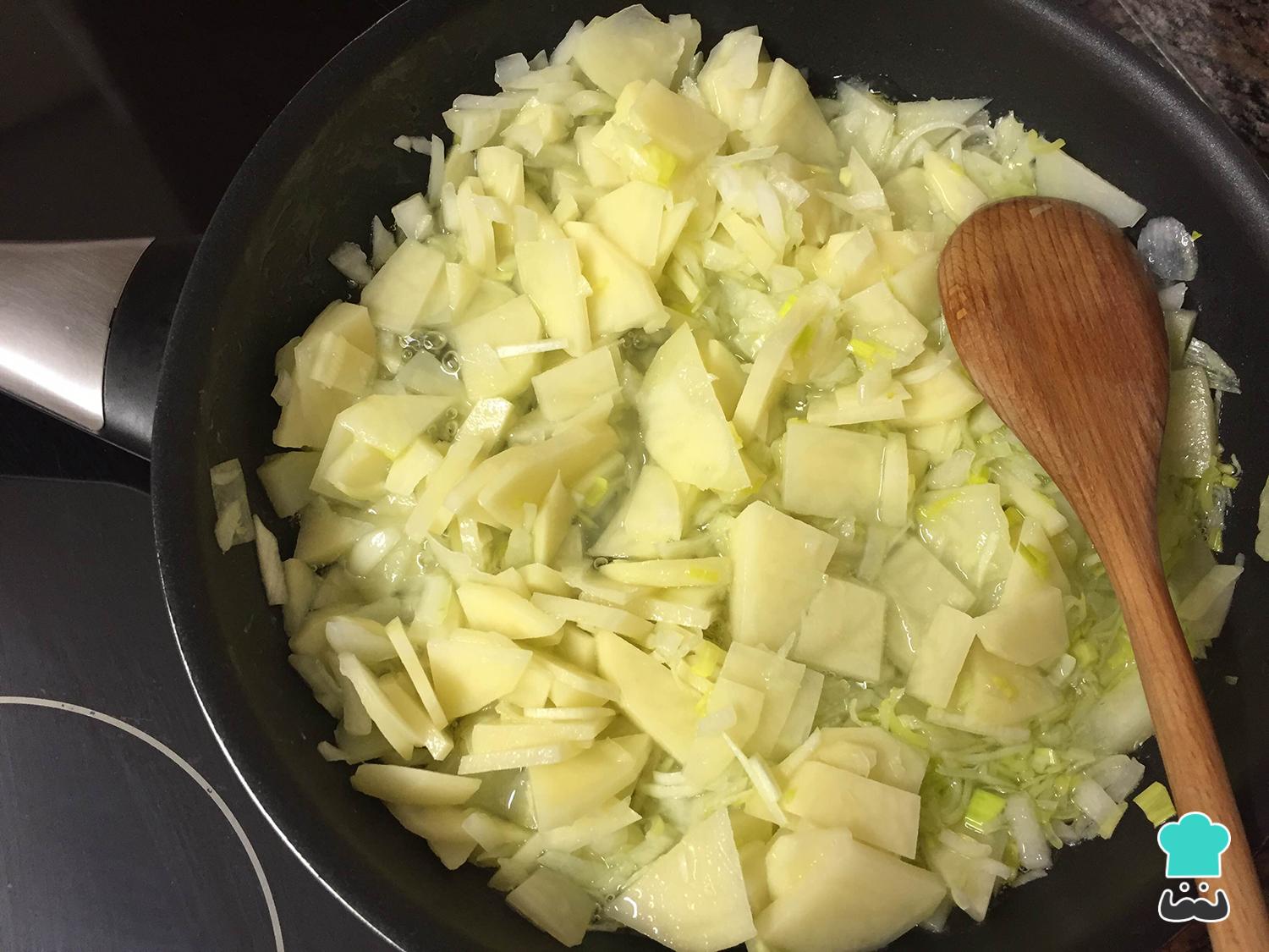 Cómo hacer Tortilla de patatas con cebolla y puerro: